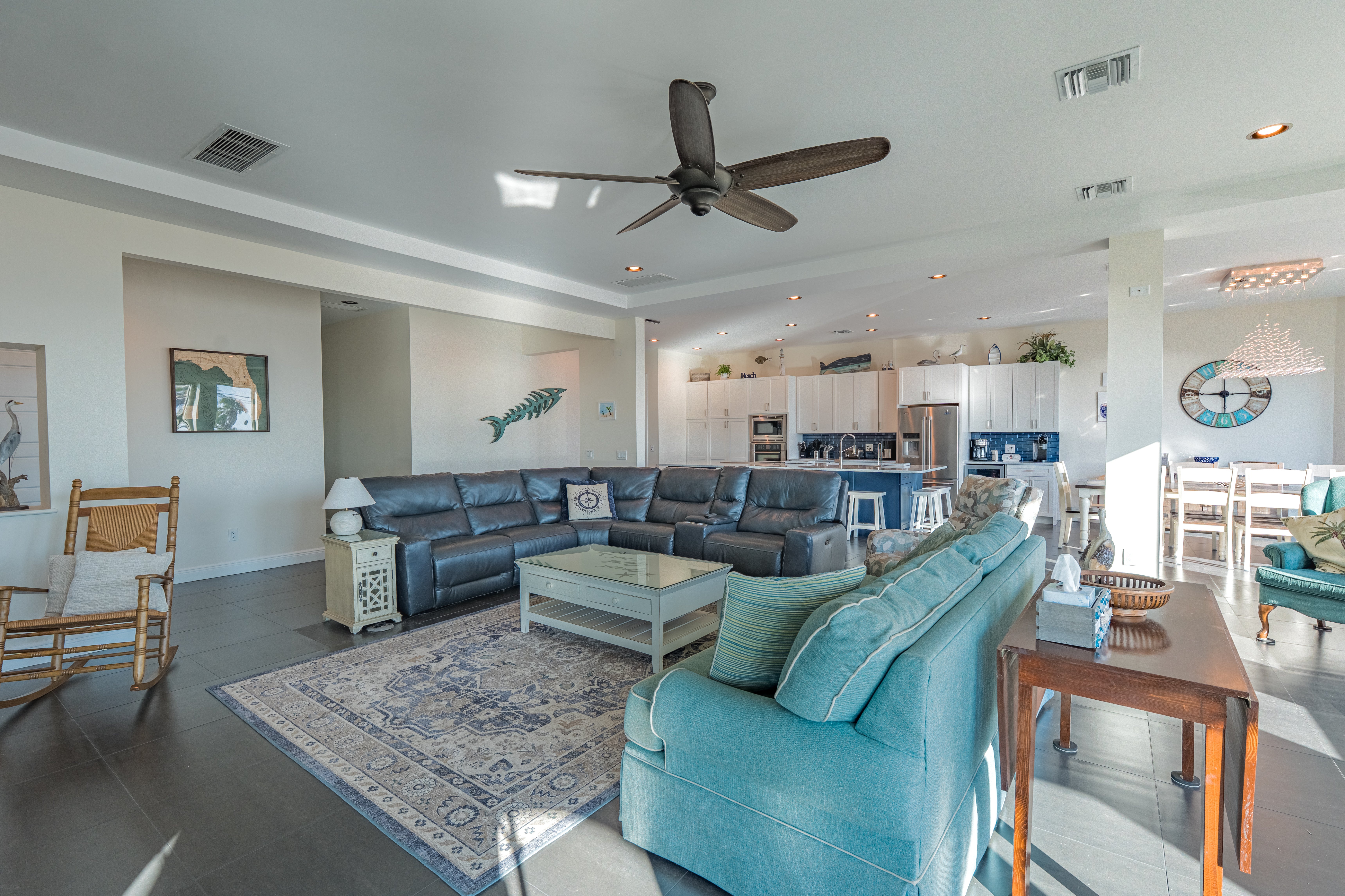 "Great location - Our family of 16 stayed in the house for a week and had a wonderful time. The house is spacious, especially in the three areas where we congregated as a group (pool, kitchen, living room). The TV in the living room was huge which allowed for people to sit far away and still see. Access to the beach was close and easy. The grocery store and seafood restaurants were also a short drive. Everyone in our group would recommend this house."