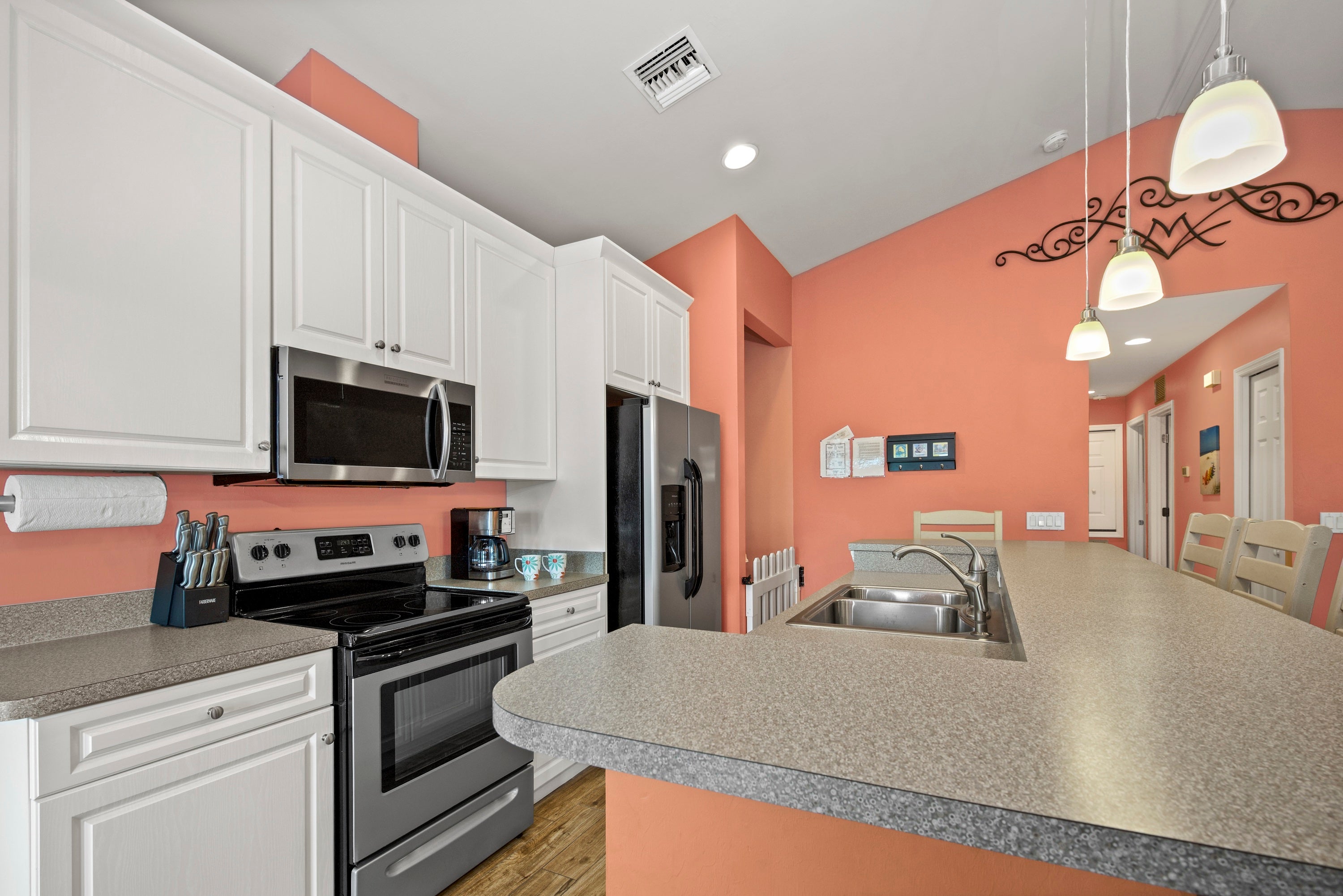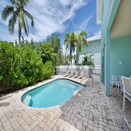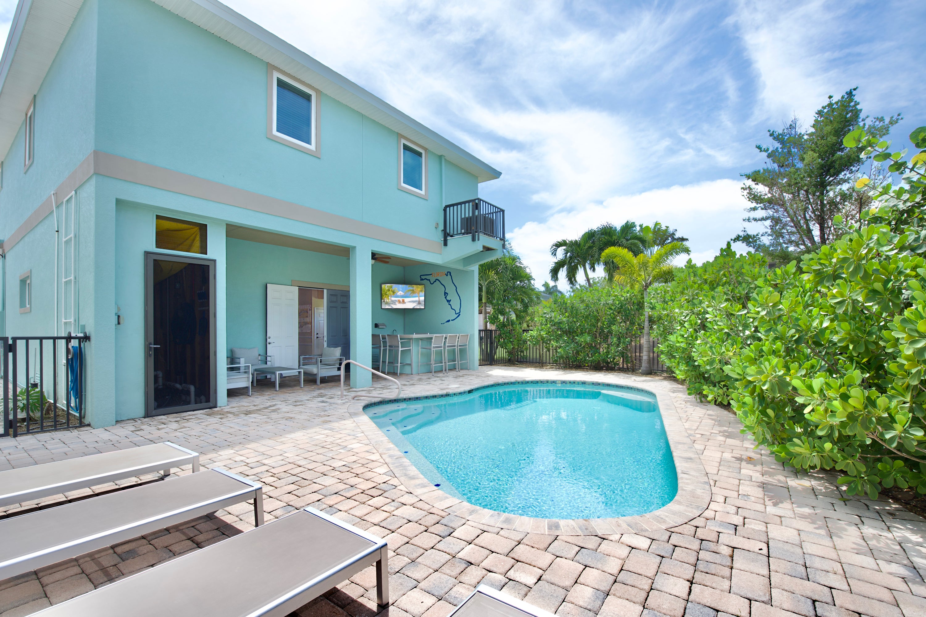 Stay on the North end of Fort Myers Beach at Sand Dollar on Miramar. This three-bedroom pool home is an easy walk to the beach and less than a mile from all the action at Times Square. Vaulted ceilings and plenty of window’s help fill the living space with tons of natural light. The cozy living room offers a sleeper sofa and flat screen TV while the fully equipped kitchen offers stainless steel appliances and a breakfast bar. Unwind on the large, covered balcony perfect for taking in the evening breezes. The primary bedroom offers a king bed, TV, and attached bathroom with walk-in shower. There are two queen guest bedrooms that share a bathroom with tub/shower combo. The private backyard includes a pool and lounge chairs to soak up the sun. When the sun is a little too much the outdoor bar which overlooks the pool provides a little shade for you. Come visit Sand Dollar on Miramar and make lasting memories on your next beach vacation.