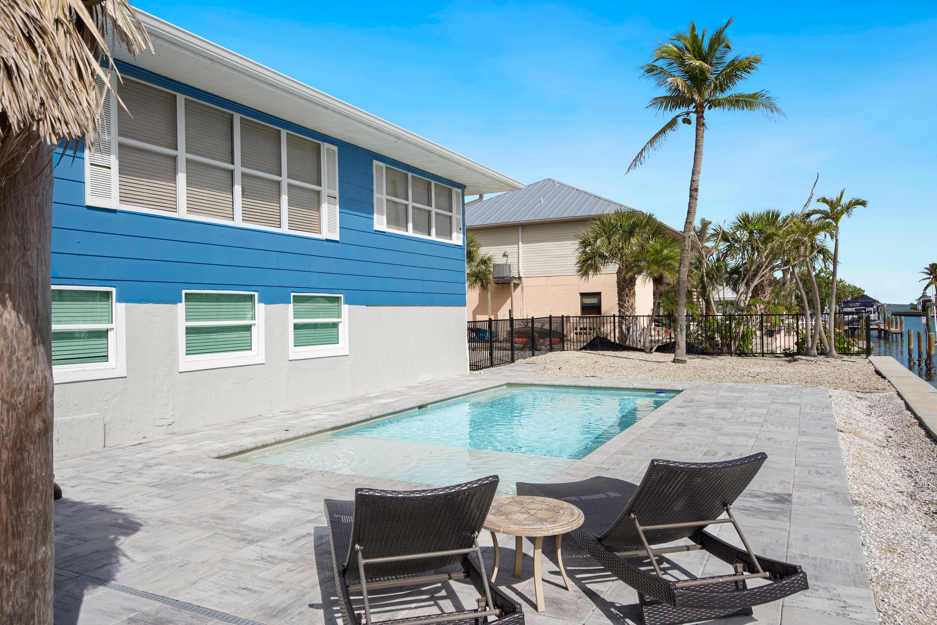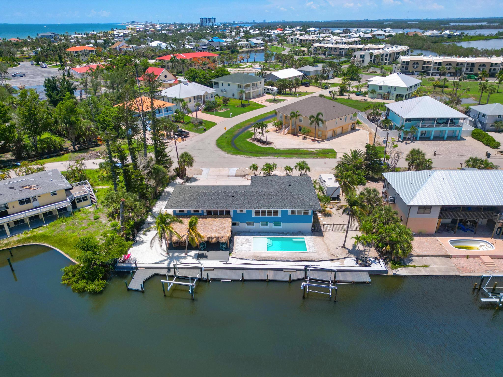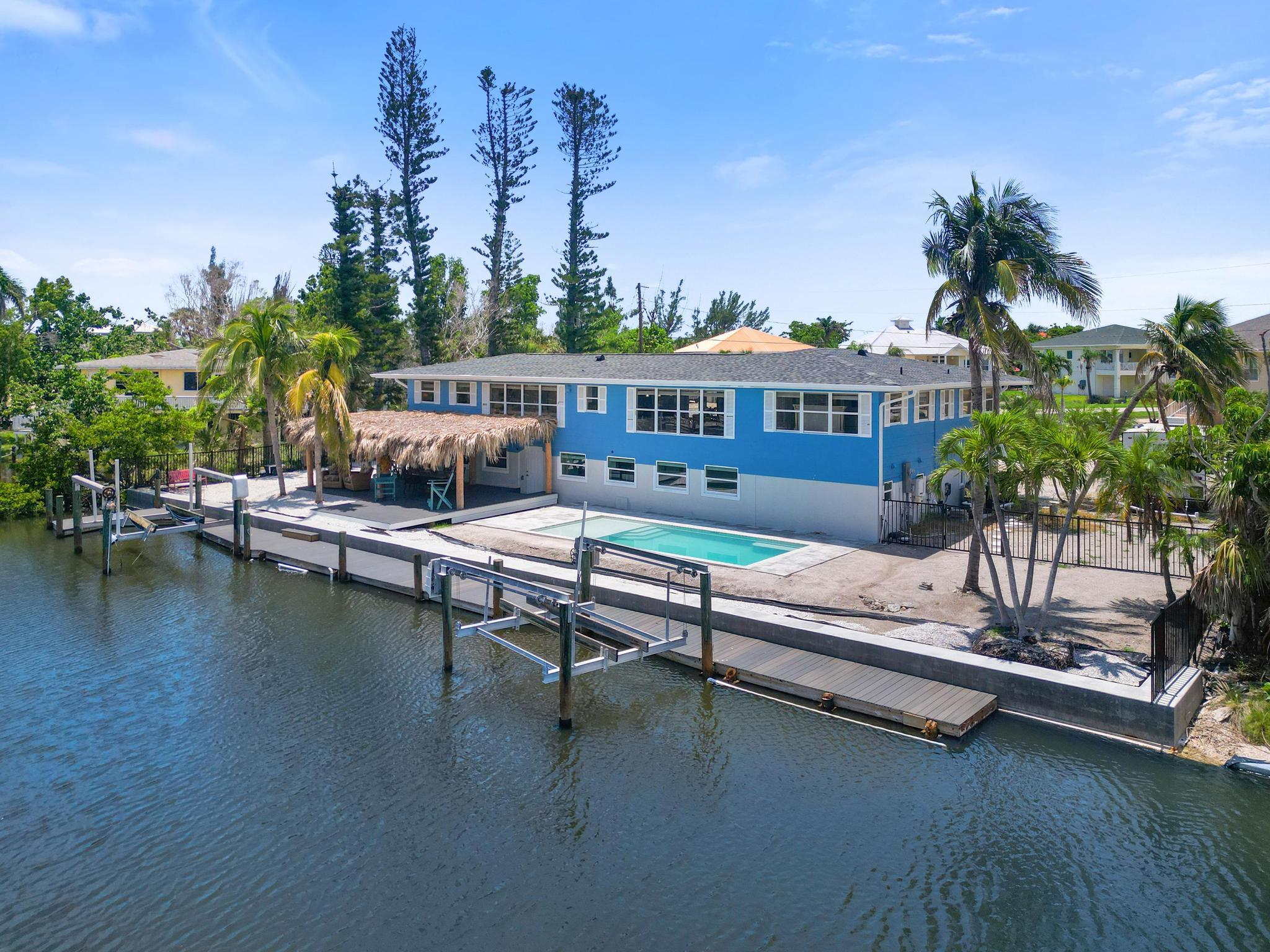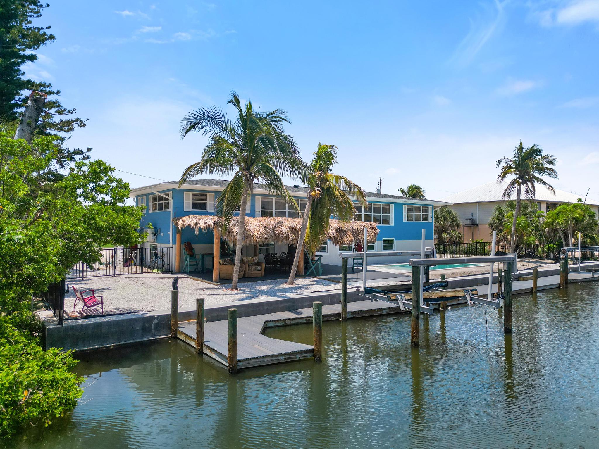 "This was a great place for a large group. We had a group of couples for a 40th birthday, and plenty of places on the beach can sleep a large group but not everyone would have their own room. This had a room for everyone WITH a bathroom in each room. Being on the water was perfect and we were able to fit a 32-ft boat in between the lifts with space to spare. The beach was a short walk, only a block to the road and another block beyond that to the beach access and great section of wide, relatively empty beach. Loved having the tiki hut and the heated pool."