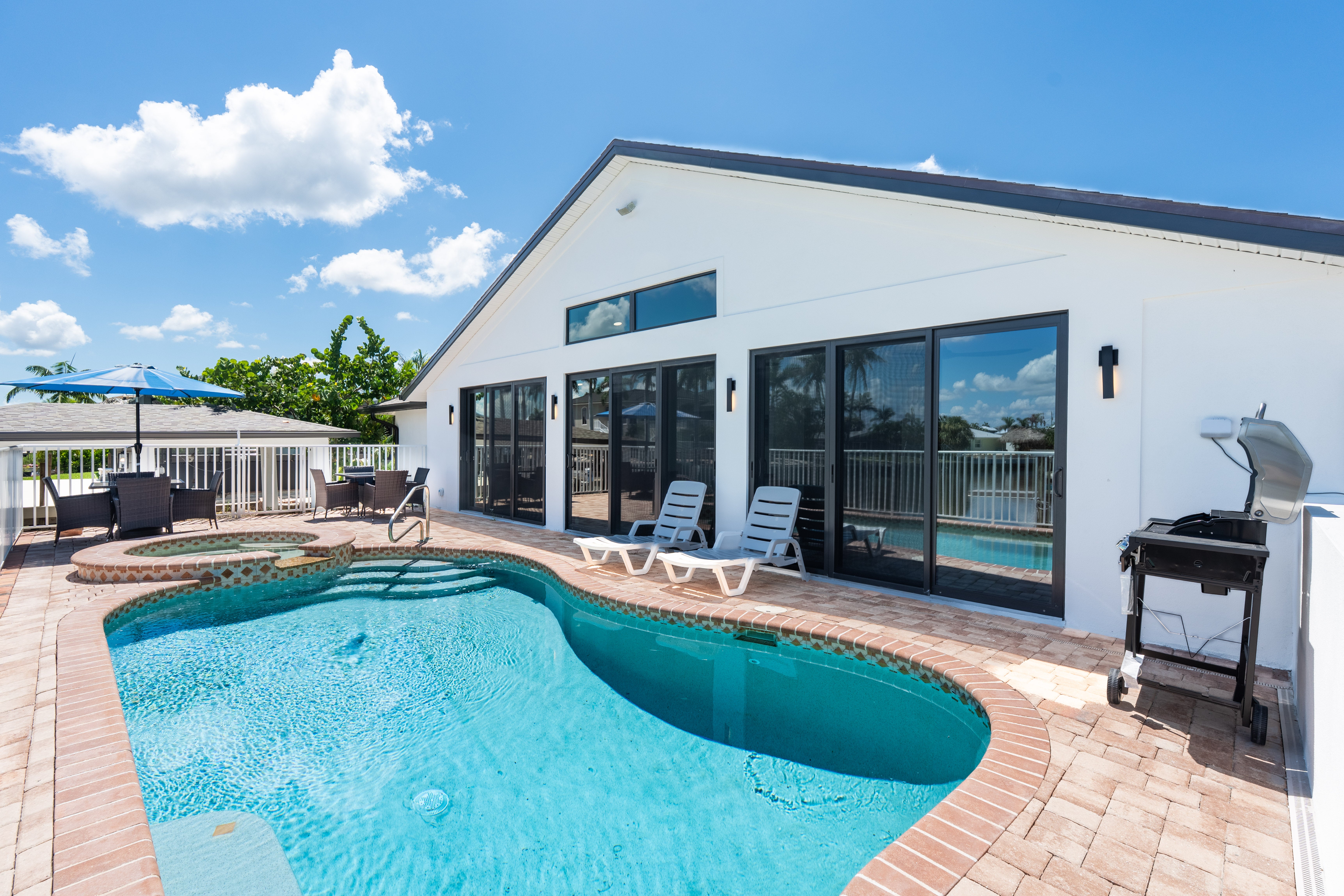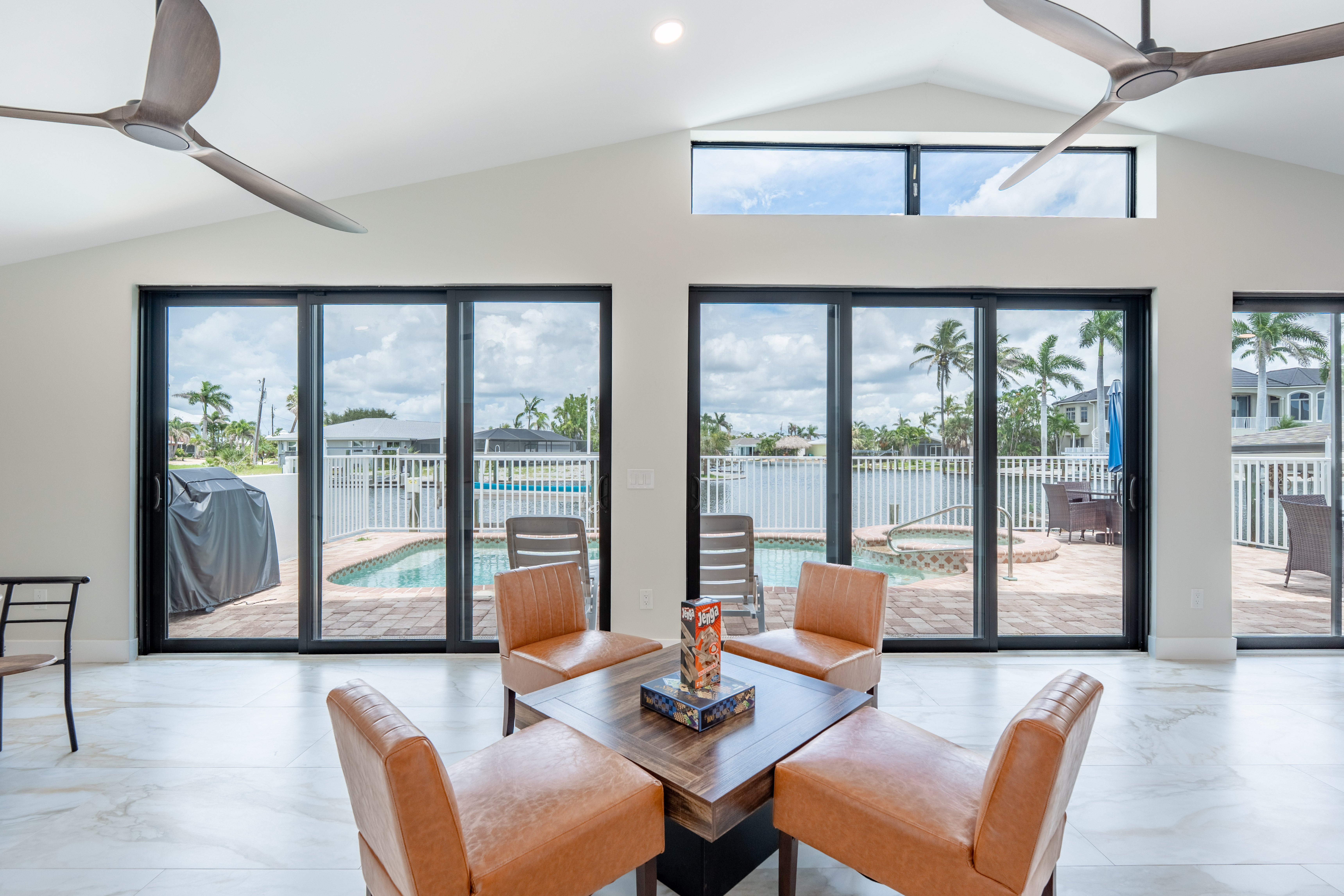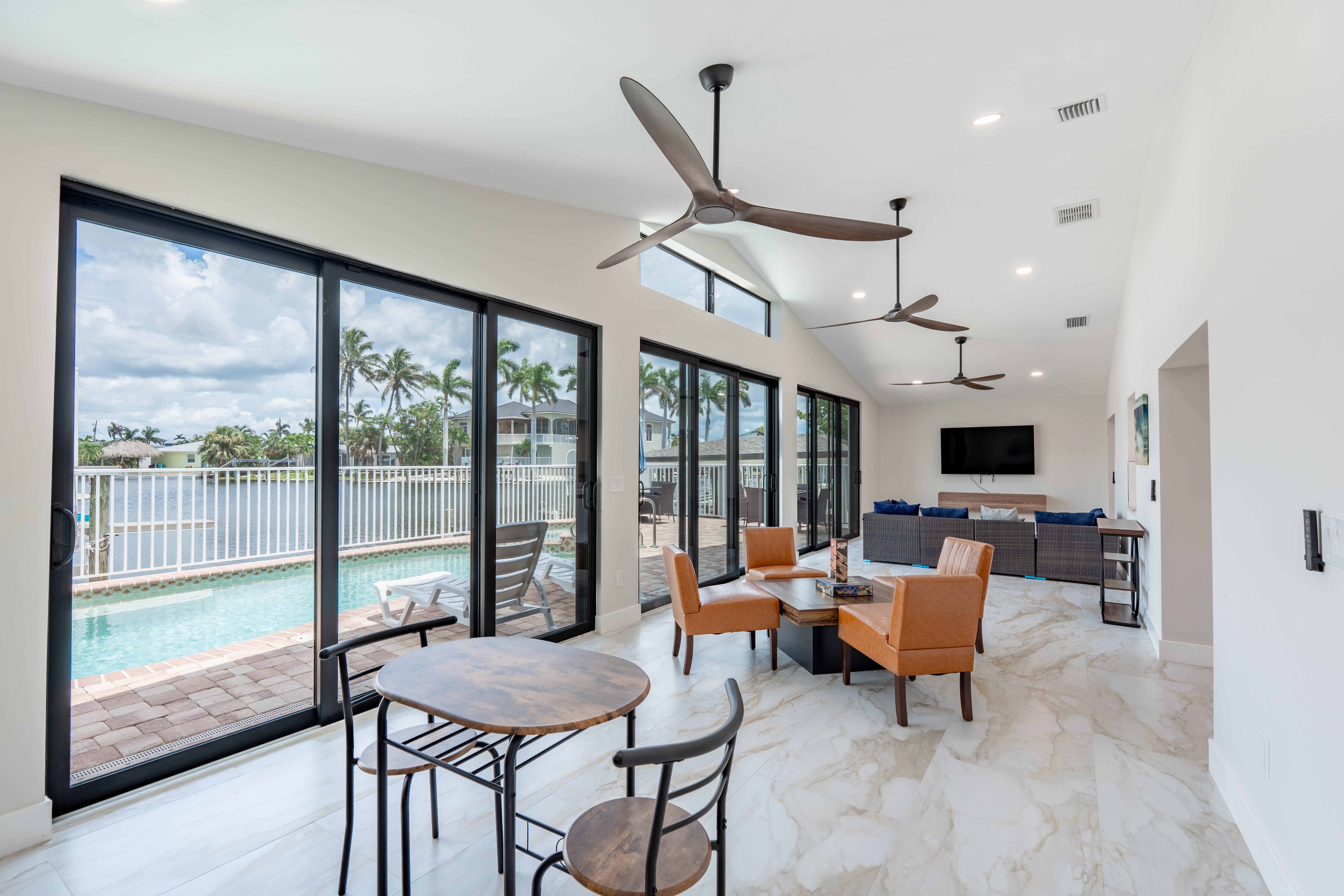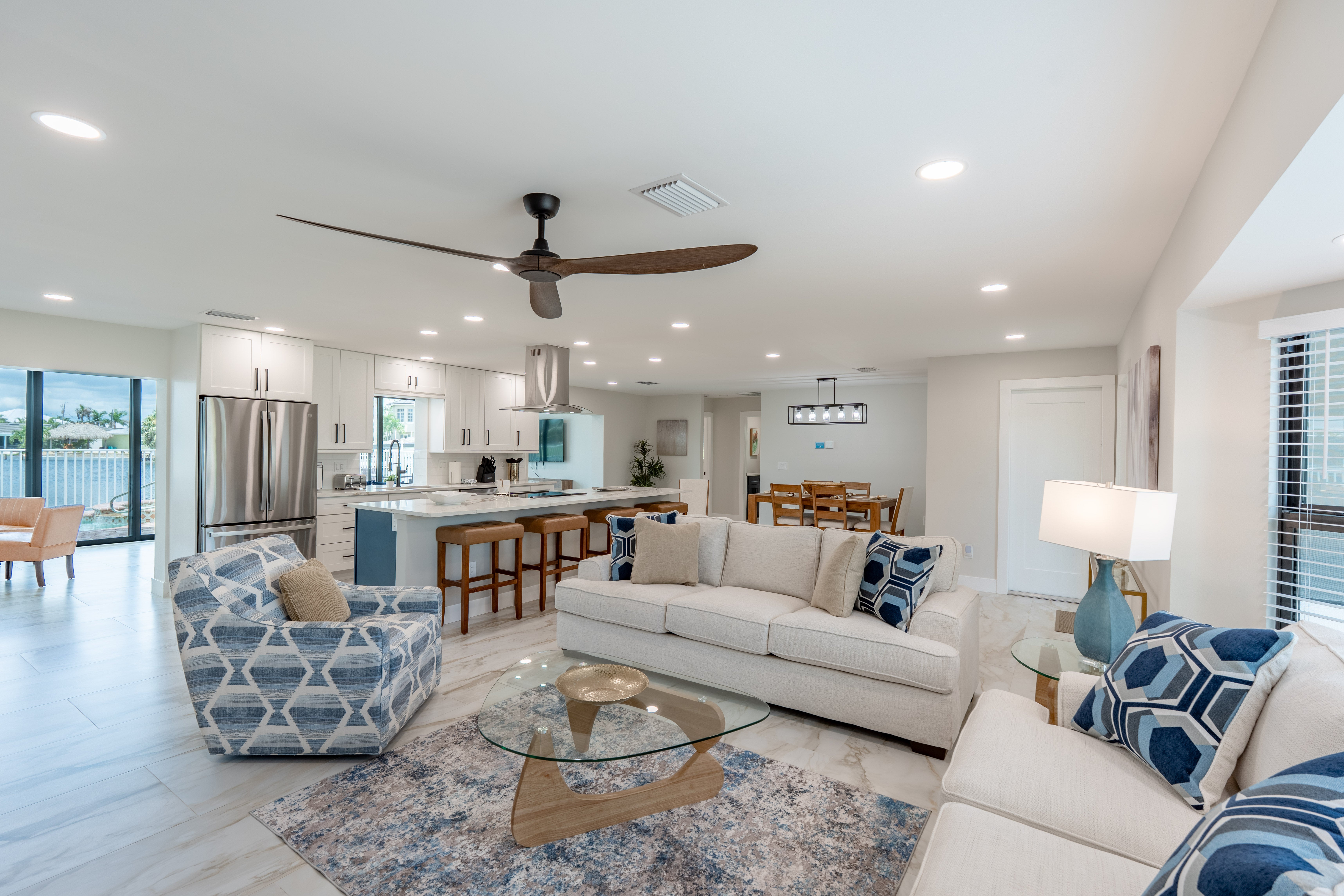 The home features a king bedroom, a queen bedroom, and another bedroom with two twin beds, making it ideal for families or small groups. Whether you’re sipping your morning coffee by the pool, watching boats pass by on the canal, or heading out to explore the area, this home offers the best of comfort and location.