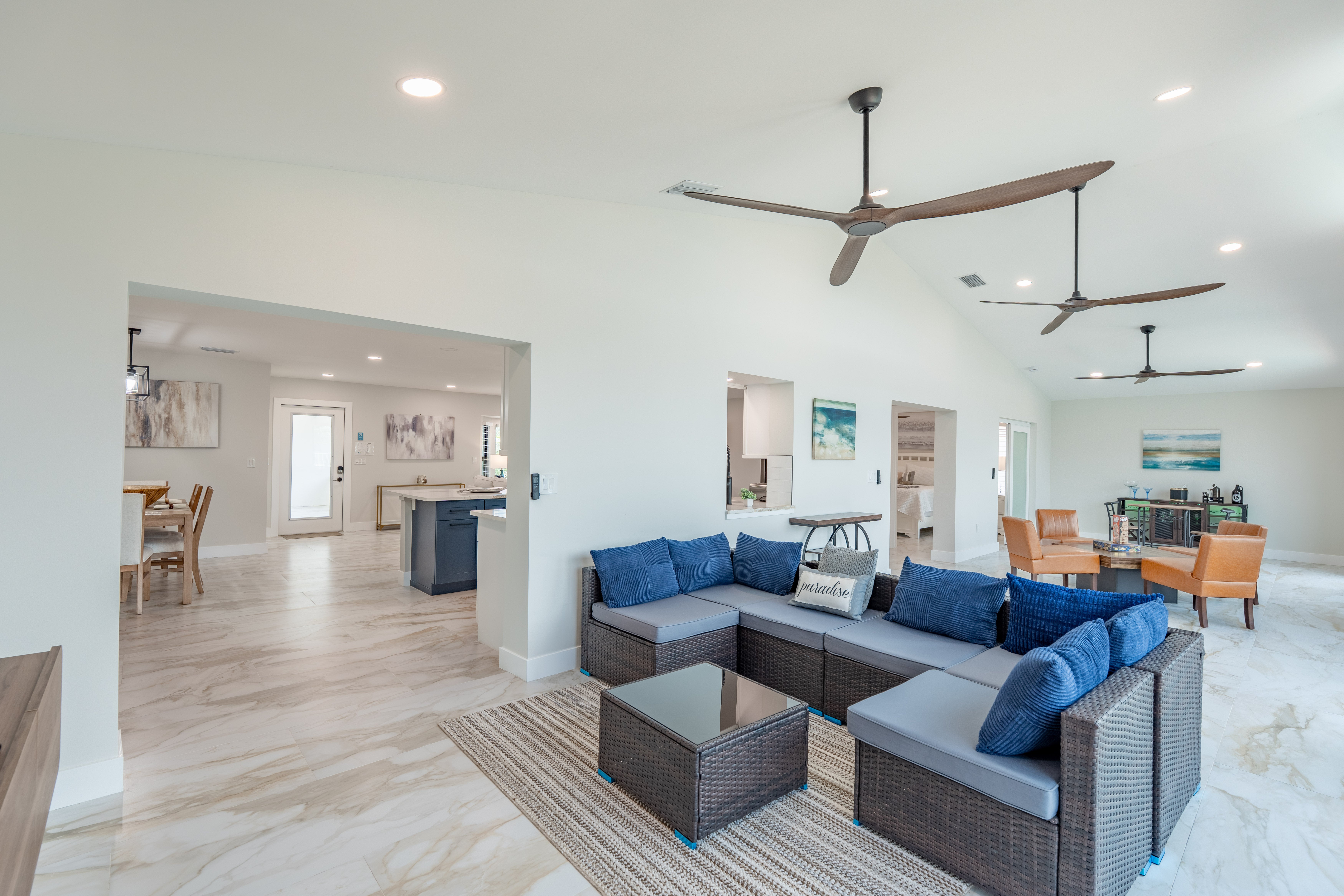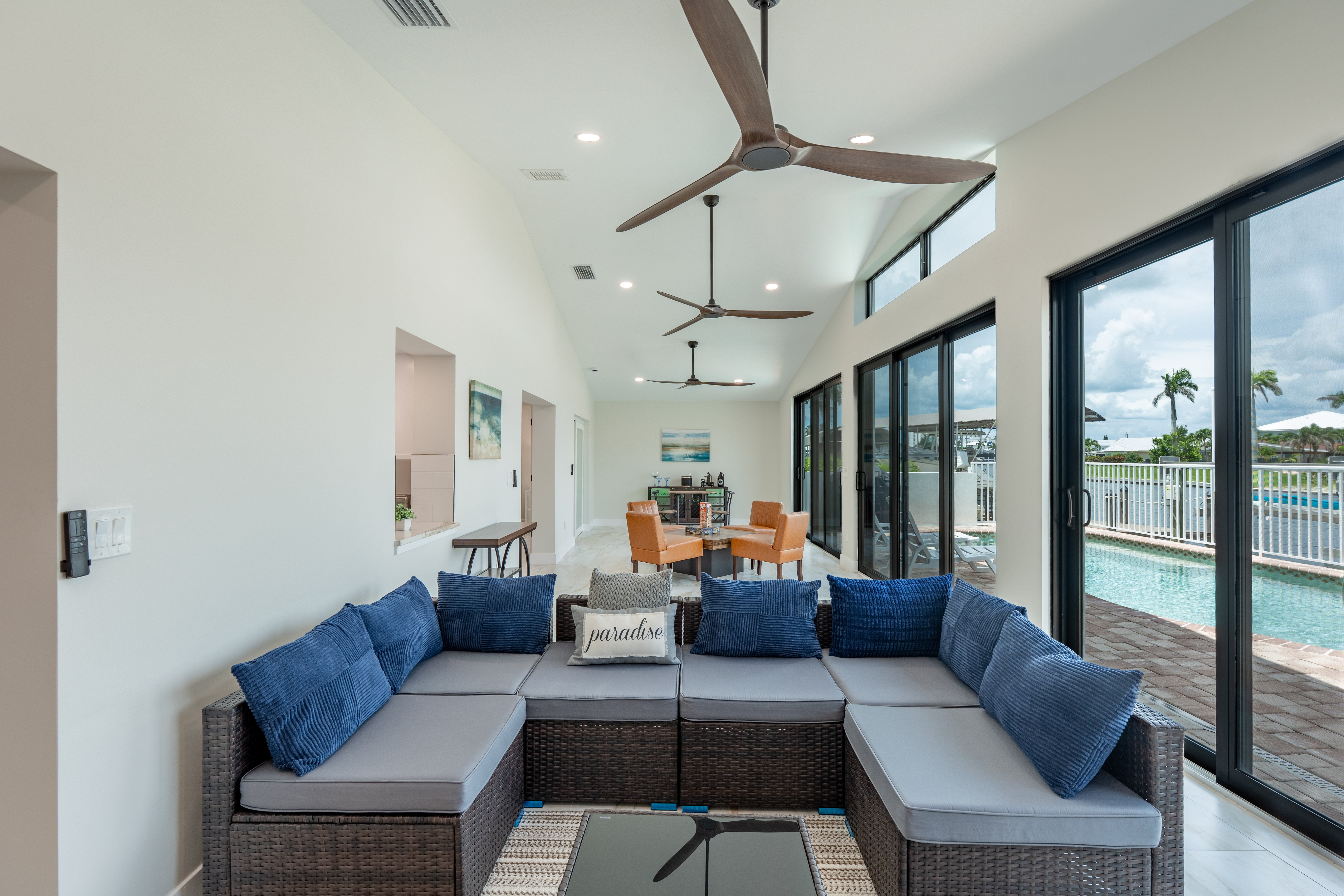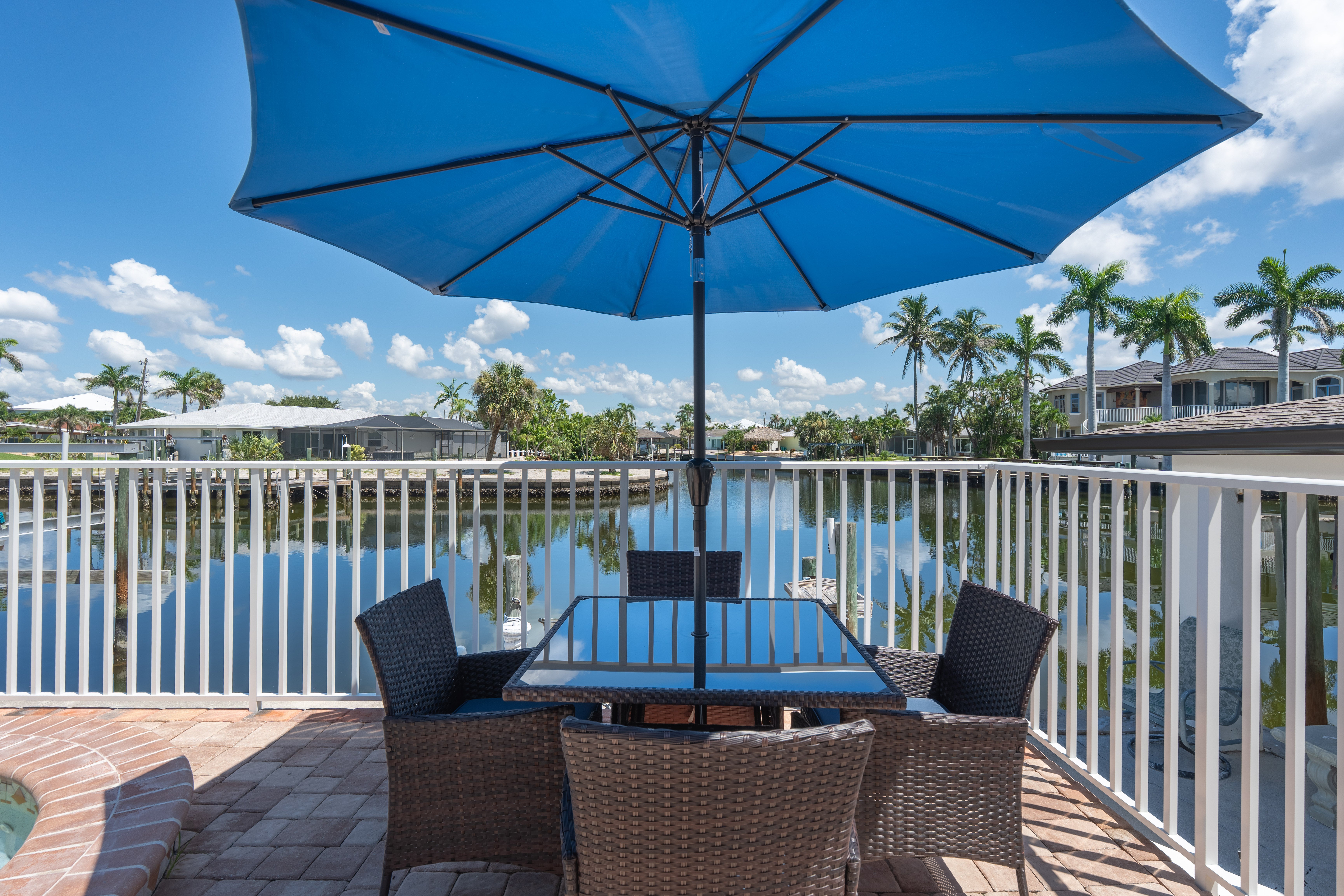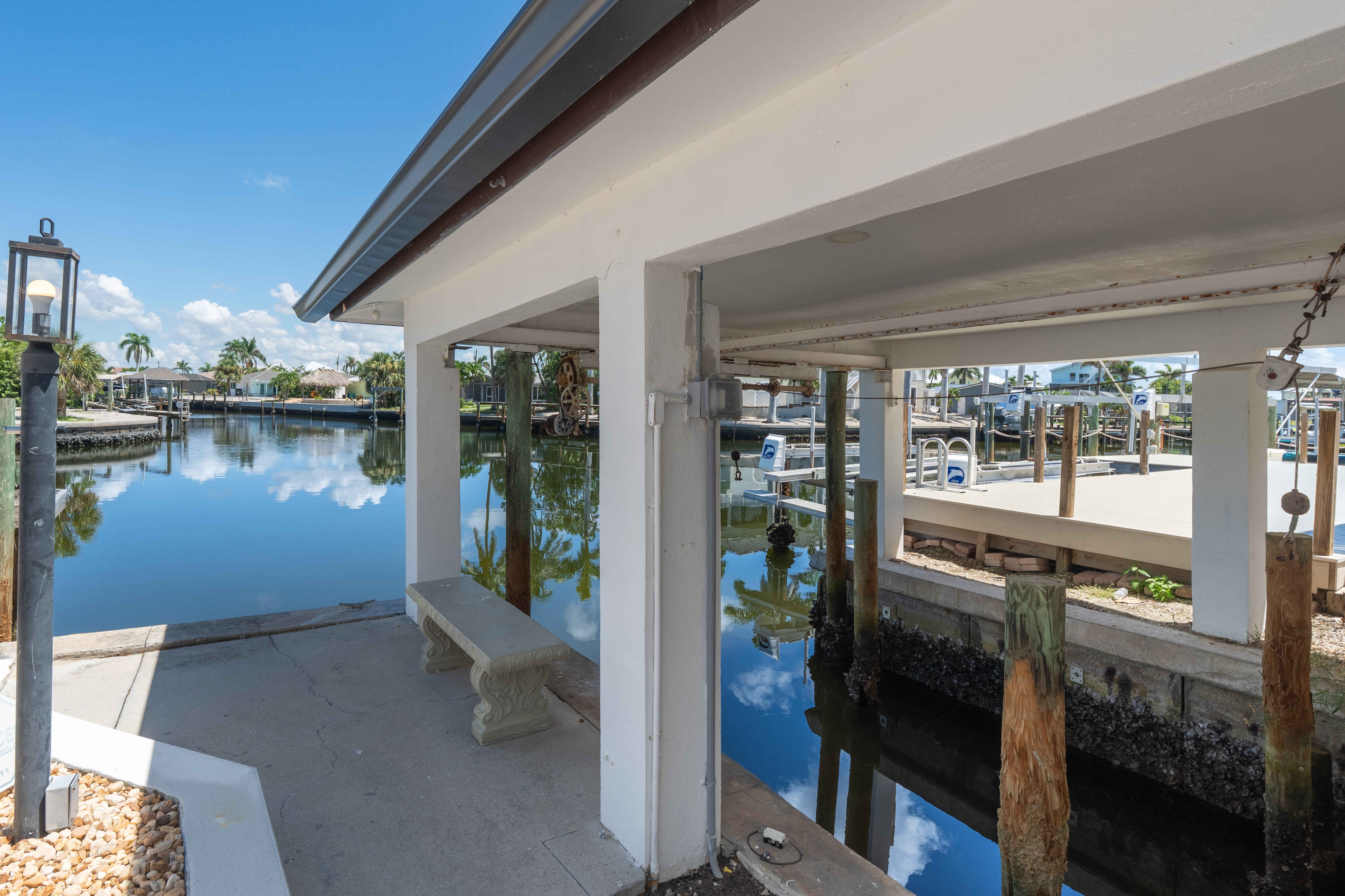 The home features a king bedroom, a queen bedroom, and another bedroom with two twin beds, making it ideal for families or small groups. Whether you’re sipping your morning coffee by the pool, watching boats pass by on the canal, or heading out to explore the area, this home offers the best of comfort and location.