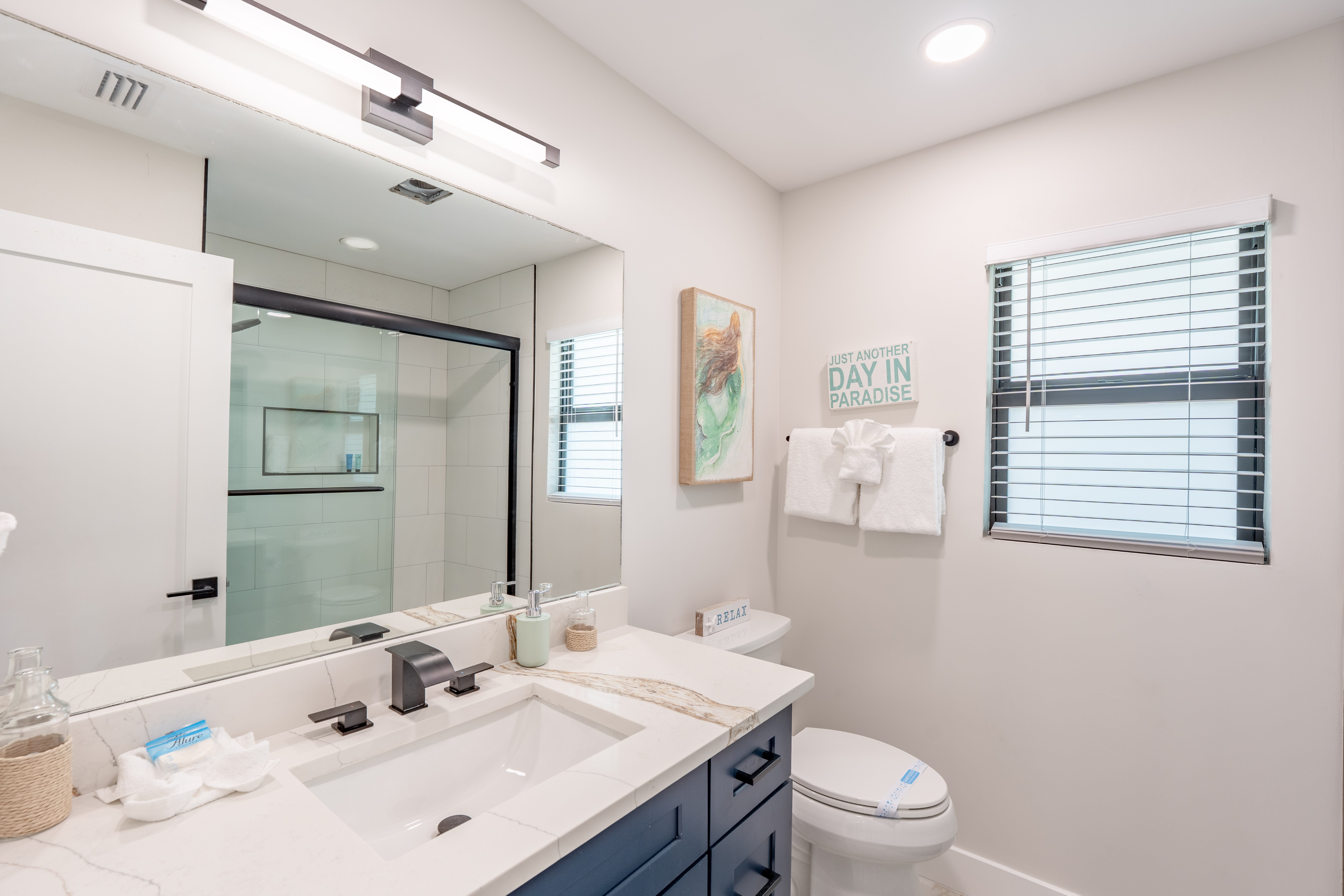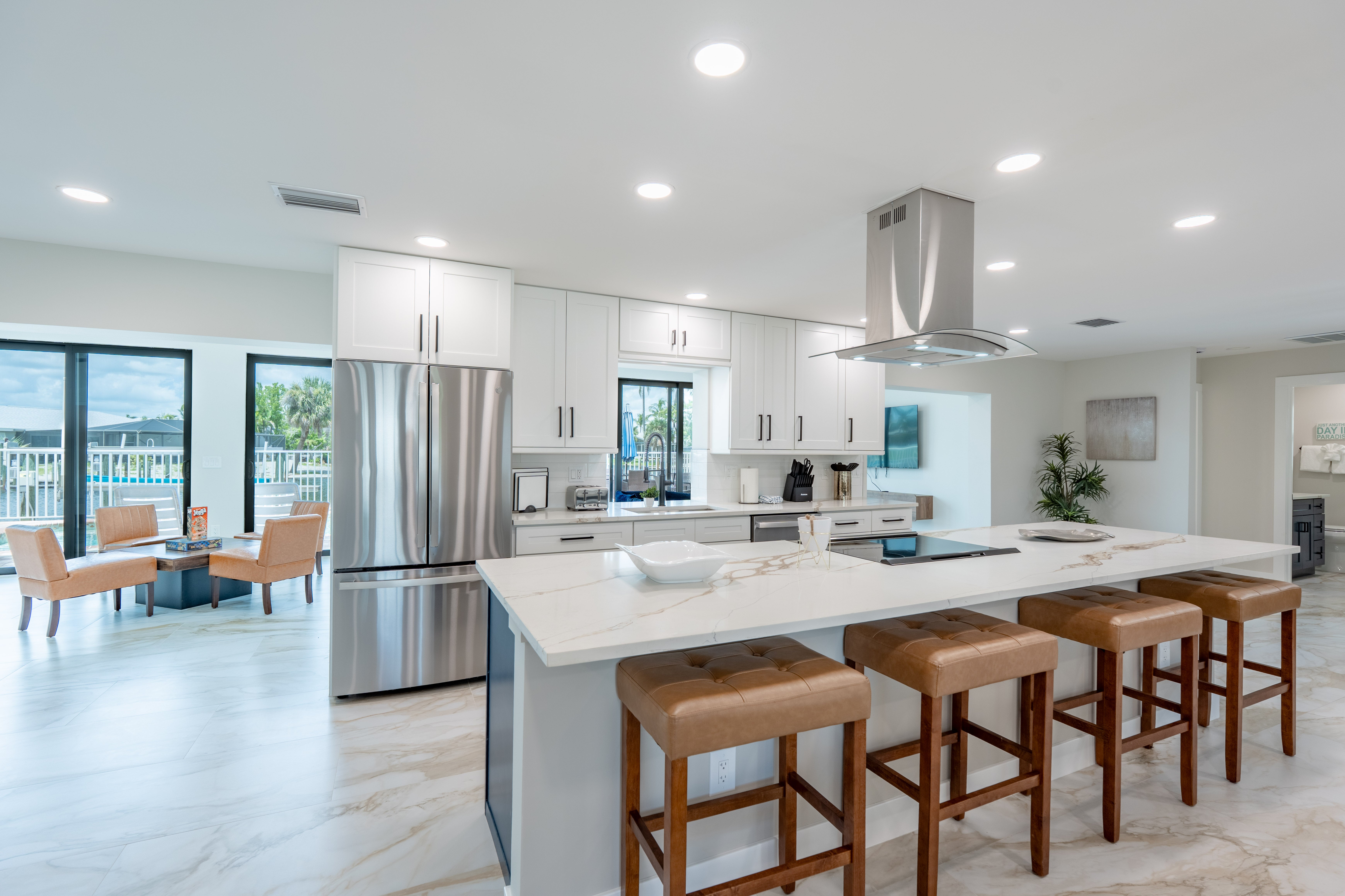 Welcome to Seas The Day, your perfect beach getaway! This newly renovated 3-bedroom, 2-bathroom home sits right on the canal and is filled with natural light and modern touches. Relax in the spacious living areas with large windows showcasing stunning water views, or step outside to your private pool and truly soak up the waterfront lifestyle.