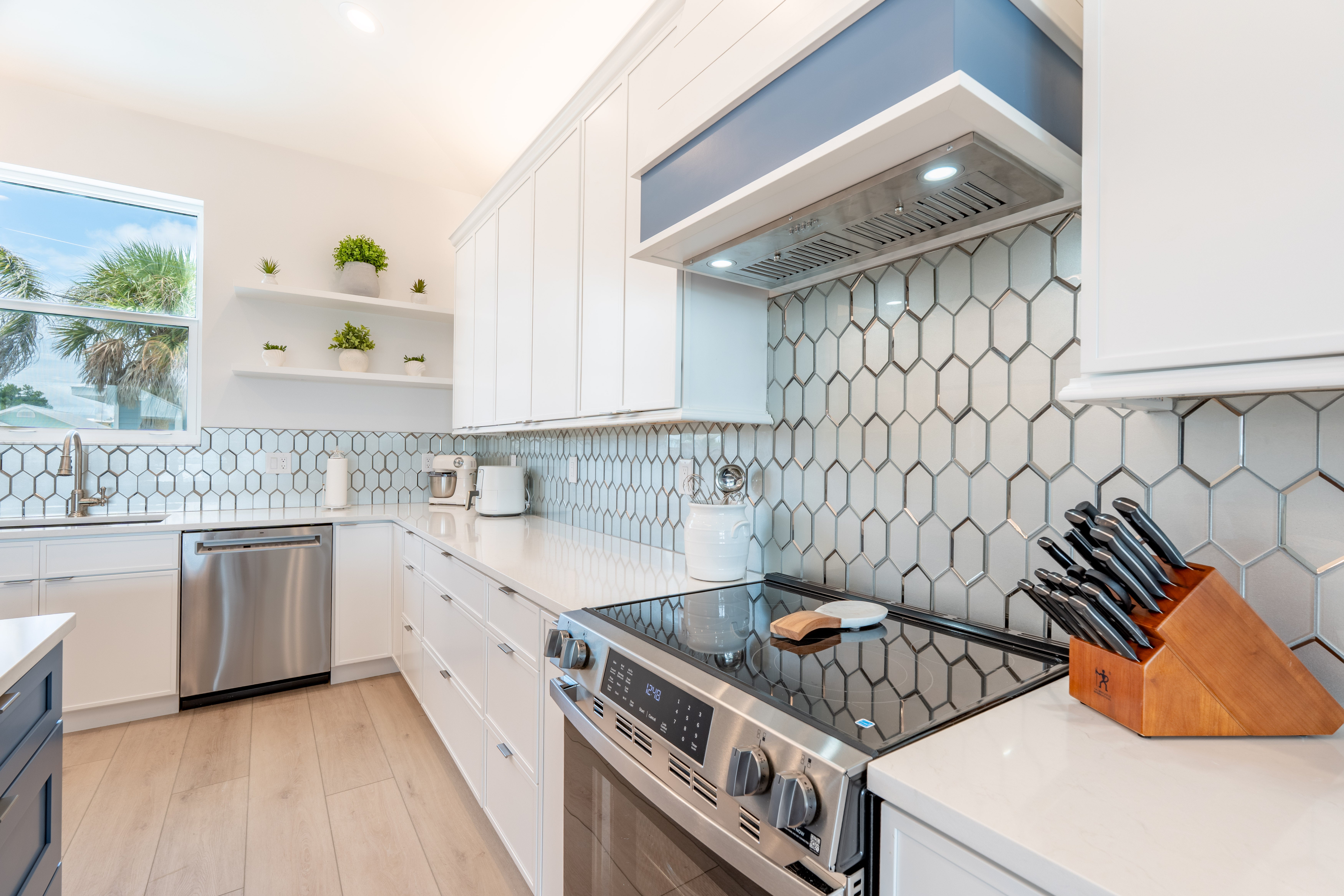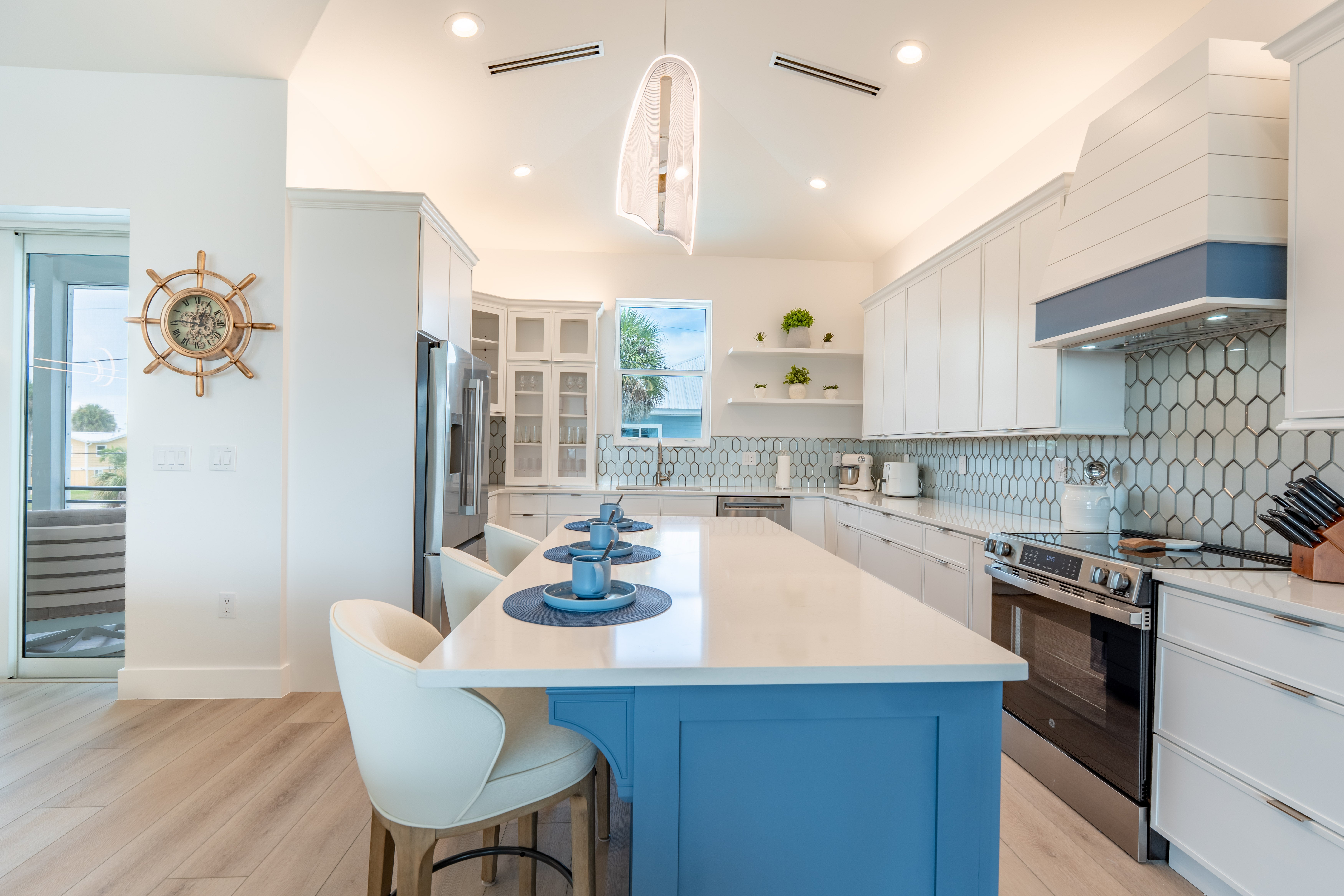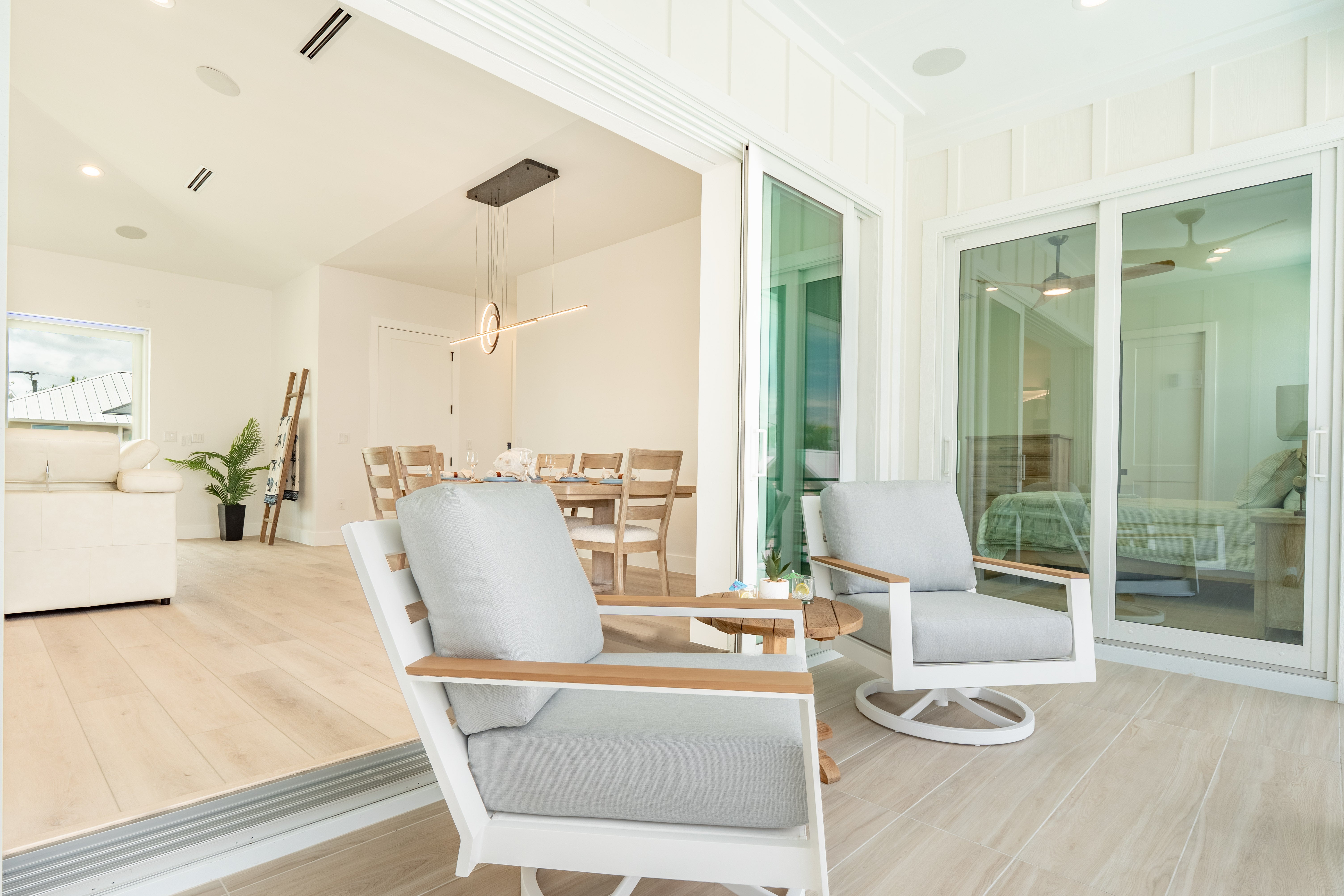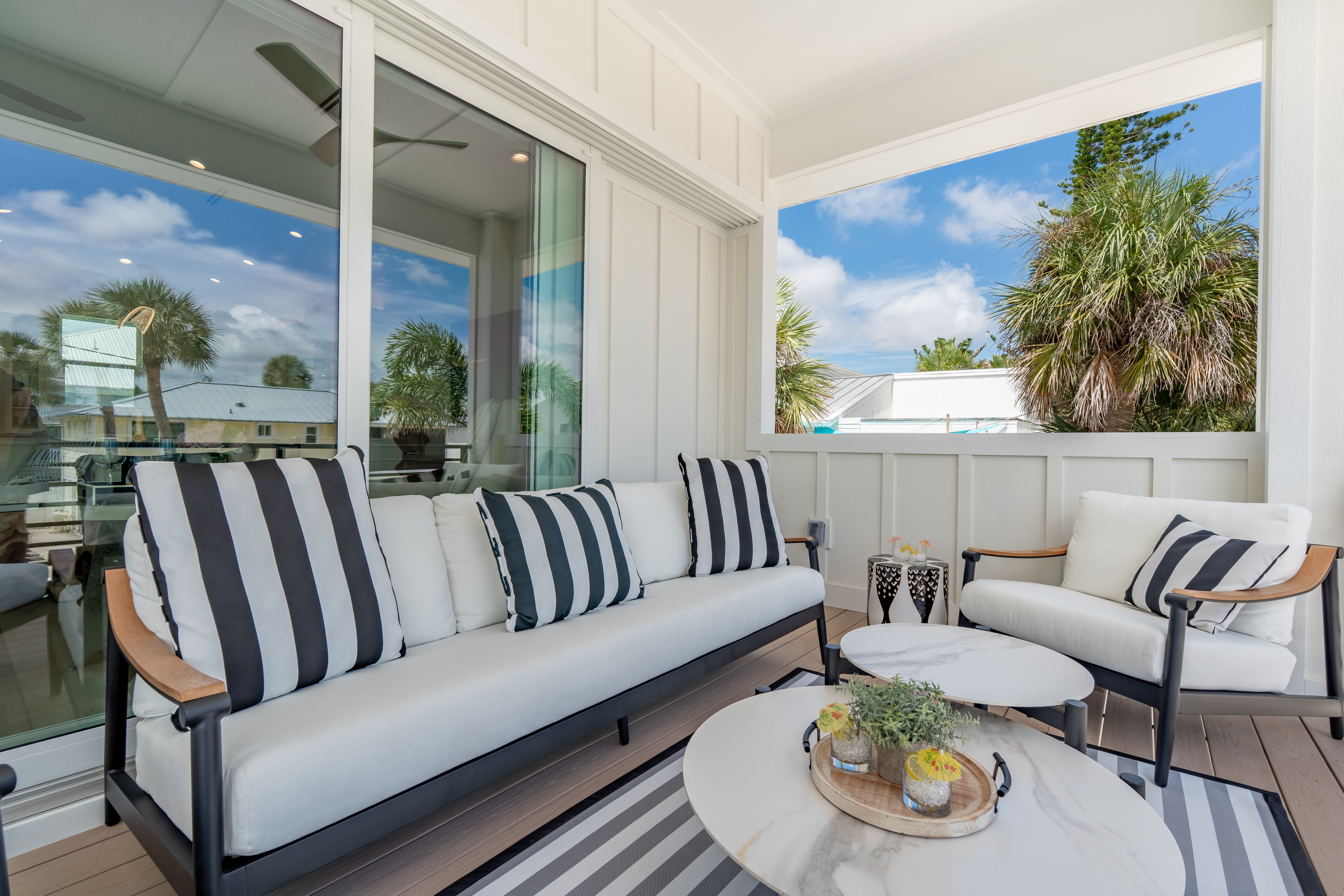 Welcome to Sun Kissed Villa, your flawless coastal sanctuary on Fort Myers Beach. This brand-new luxury villa was designed for connection, serenity, and renewal. Accommodating up to eight guests, it features four exquisite bedrooms—one king and three queens—each with a Tempur-Pedic mattress to ensure deep, restorative sleep, along with four elegant bathrooms (three full, one half) offering spa-inspired comfort. The open living area invites you to unwind on zero-gravity sofas or gather in the chef’s kitchen, fully equipped with Viking stainless-steel appliances, a quartz backsplash, and everything you need to create memorable meals. A Sonos sound system fills the air with your favorite music, while thoughtful touches like zero-gravity loungers and complimentary Wi-Fi make every moment effortless.