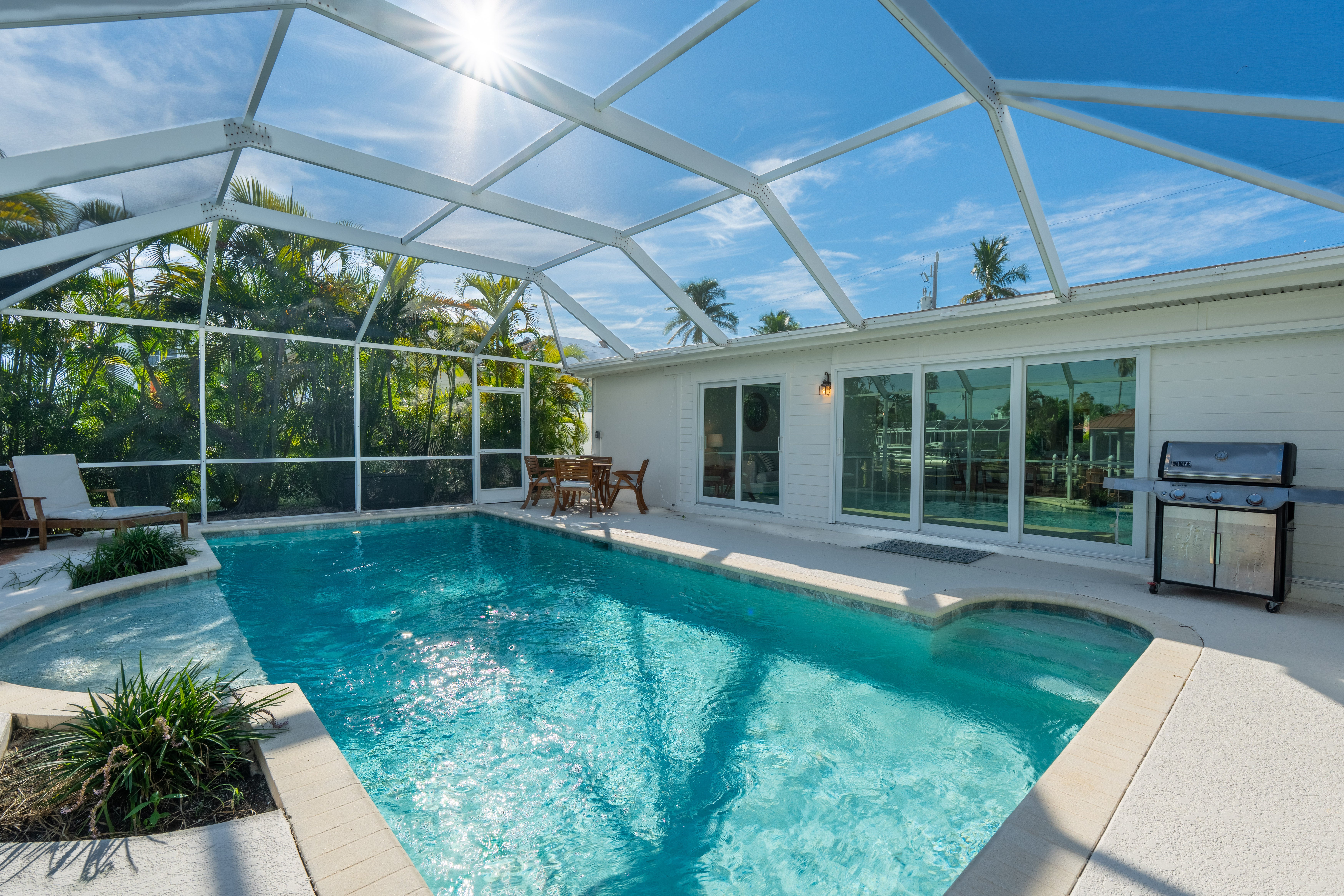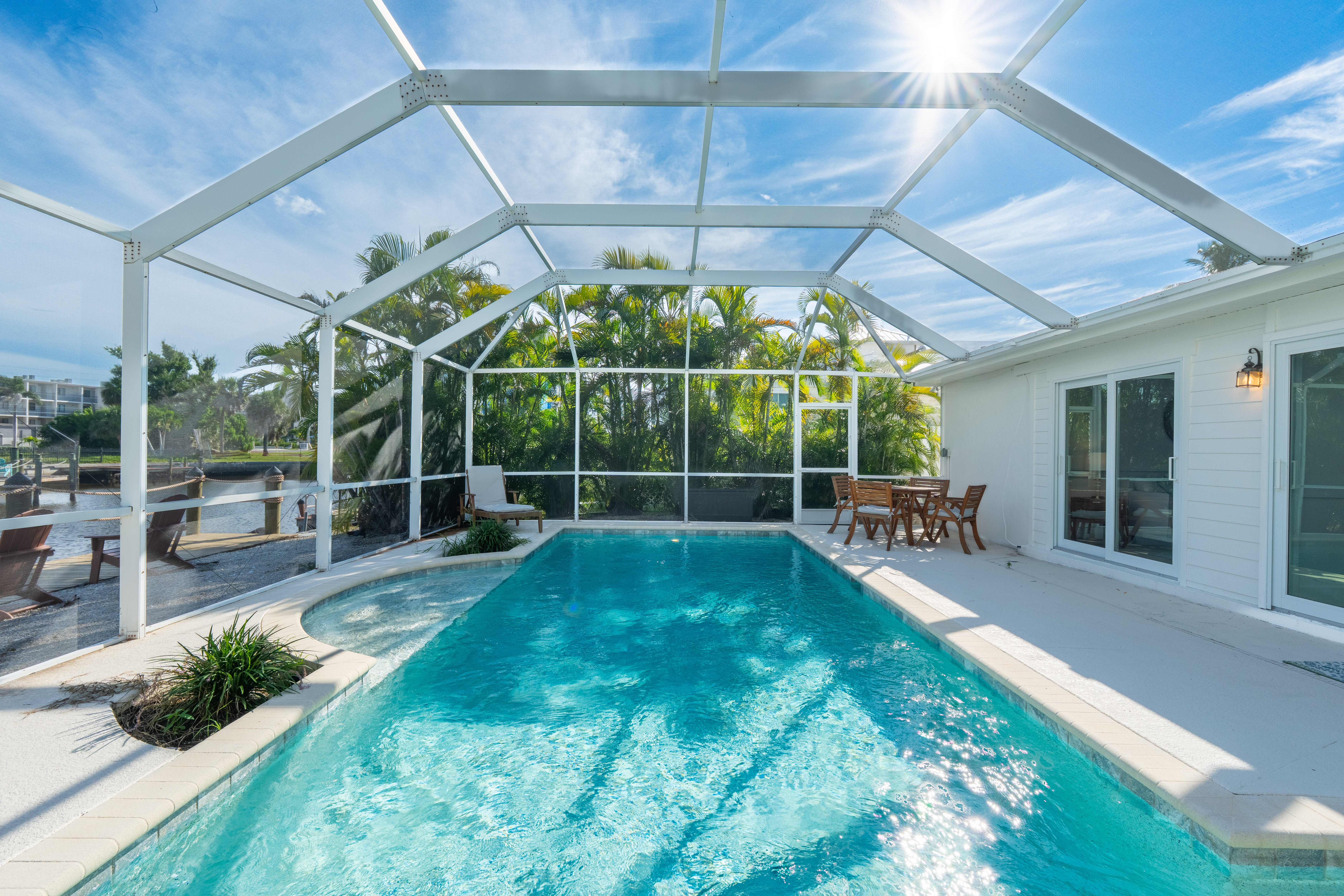 Sunset Dips in the pool.Welcome to Sunset on Ibis!Dock area located behind pool.Enjoy the views this place has to offer.Bright and open Living room space.