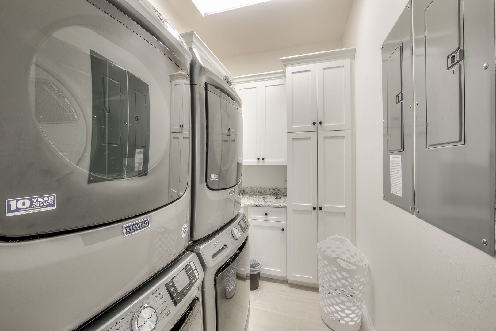 This residence showcases premium features throughout, including central climate control, overhead fans, Wi-Fi, a dedicated laundry suite, and a full-service elevator connecting every level. Outdoor enjoyment is elevated with a gas barbecue on the main-level balcony, a spacious ground-level bonus lounge opening to a furnished lanai, designer décor, tile surfaces accented by area rugs, detailed tray ceilings, and a complete supply of linens and bath essentials.