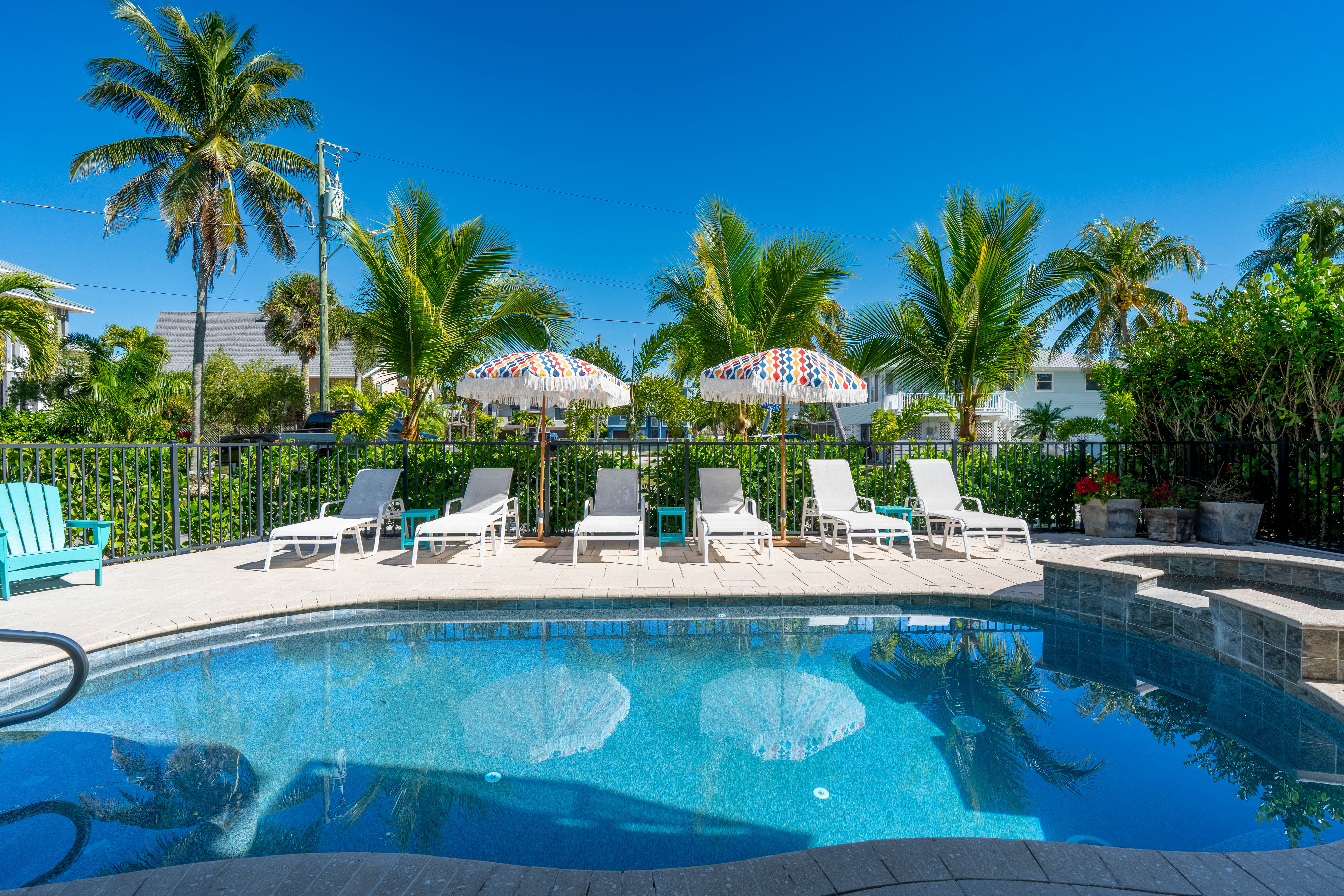 Designed with convenience and enjoyment in mind, Sweet Carolina provides everything needed for stress-free beach days, including beach towels, chairs, a cooler, and a wagon, along with a private elevator for easy transport of luggage and groceries. Outdoor living shines with a Weber grill, poolside dining, multiple loungers, and high-top seating, while the top-deck balcony offers beautiful bay views and sunset moments. Located within walking distance to downtown Fort Myers Beach, multiple beach access points, and local attractions, this home is the ideal setting to unwind, reconnect, and create unforgettable coastal memories.