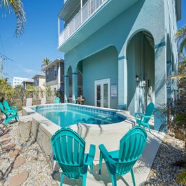 "Family Vacation to Ft Myers Beach - The property was very nice and conveniently located! We truly enjoyed our stay! It was a short walk to the beach and not far from many activities and restaurants. The pool was very nice and private - we spent many lazy afternoons enjoying it. There was plenty of room for everyone to spend time together in the living room/kitchen areas and we played lots of games in the evenings in the open space. The home was very clean upon our arrival, and we greatly appreciated the beach towels available as well as all of the chairs, flotation devices, and beach umbrella. We took the umbrella and chairs to the beach with us each day and with the cart it was super easy to transport everything! Also, it was great to have a small cooler to use. We found it a bit unusual that you had to walk outside to go from the second to the third stories. While it was undercover, it was open to the outside. Would have preferred there was a lock to get into the staircase area from the outside. The youngest in our group was 16 so everyone was old enough for the layout but wouldn't have liked if we had younger children. Lots of steps to get into the main living areas on the second and third floors but that was fine for everyone in our group. Overall, it is a great property with lots of space and amenities and you can't beat the location!! We would definitely recommend!!!"