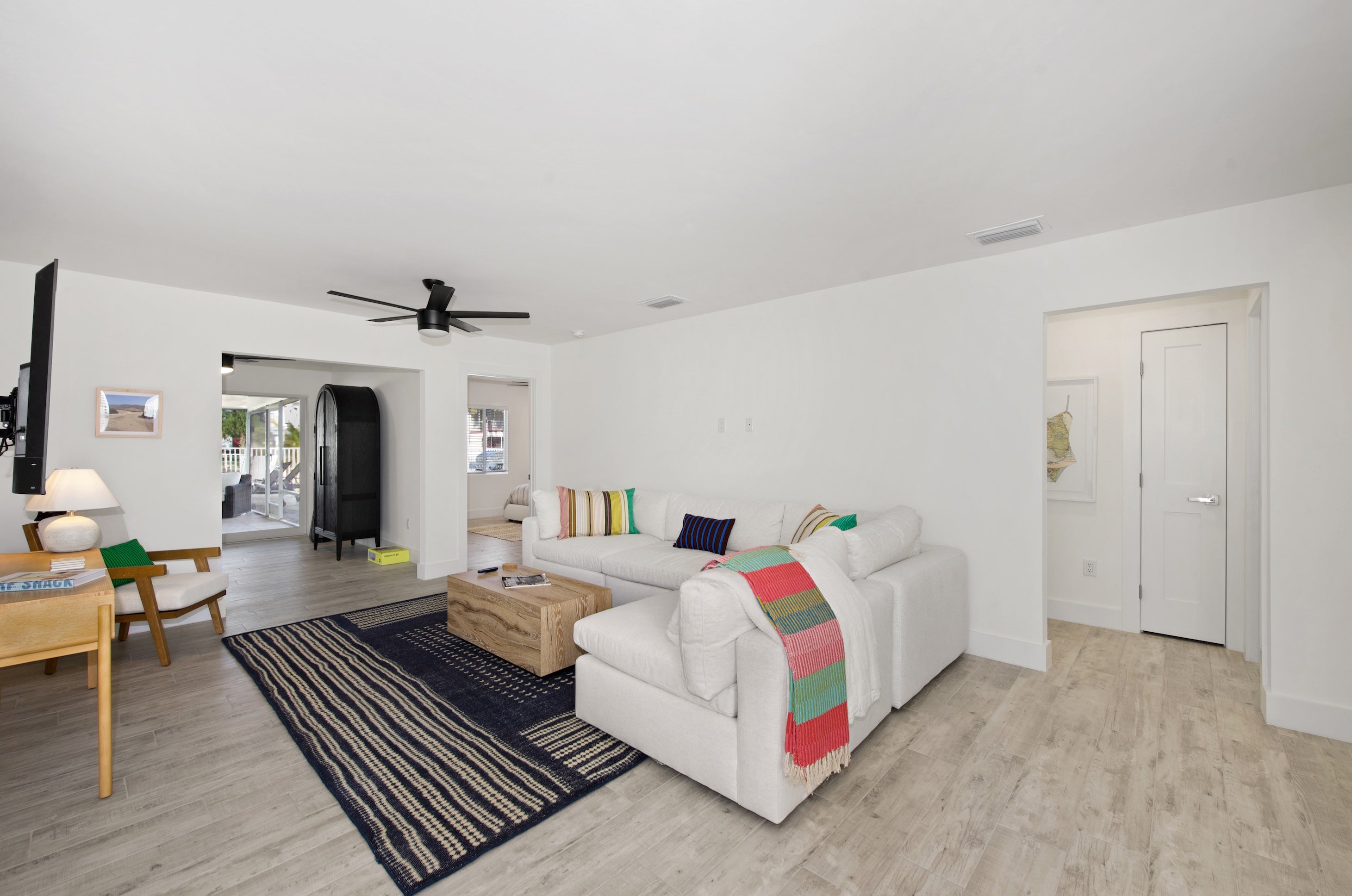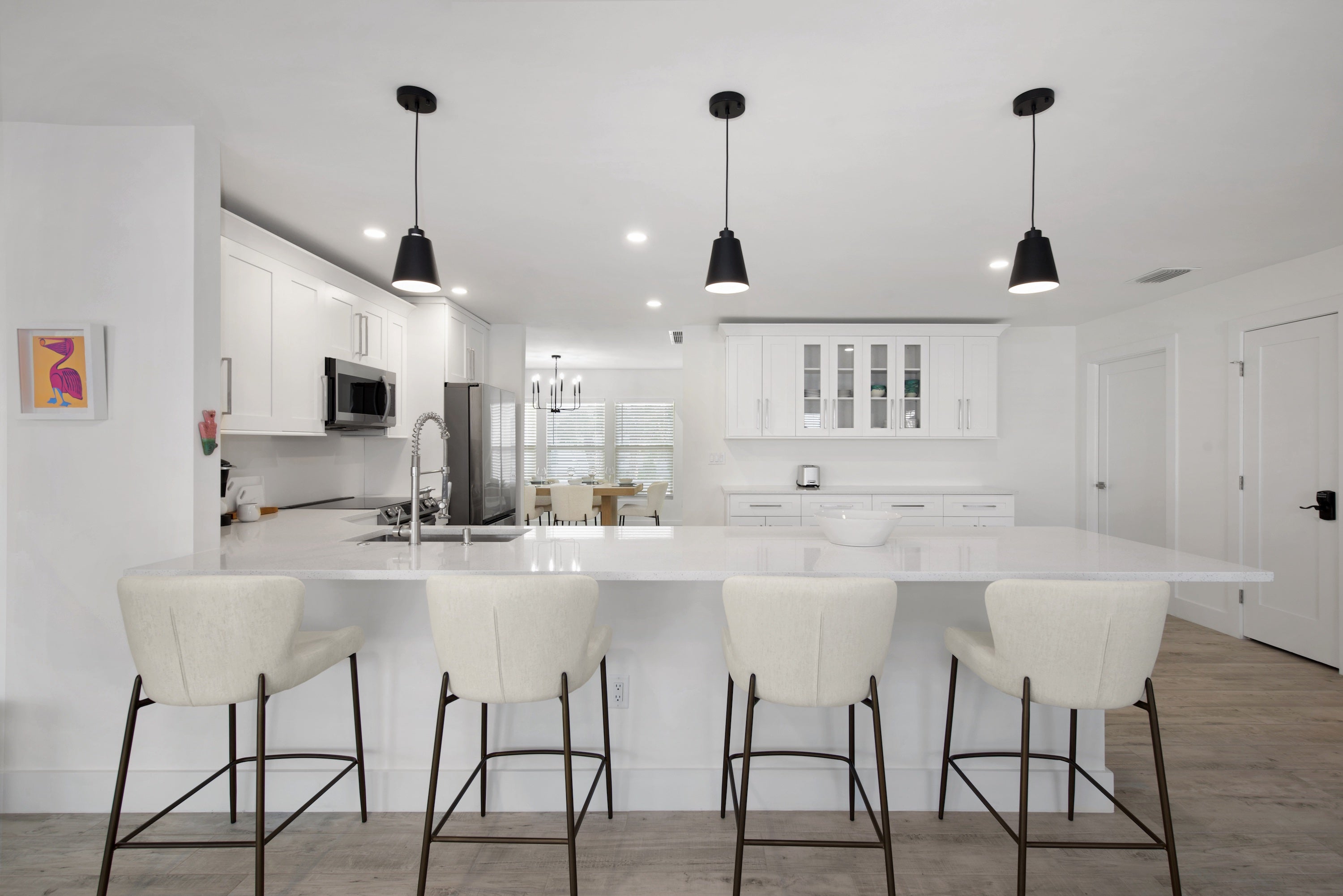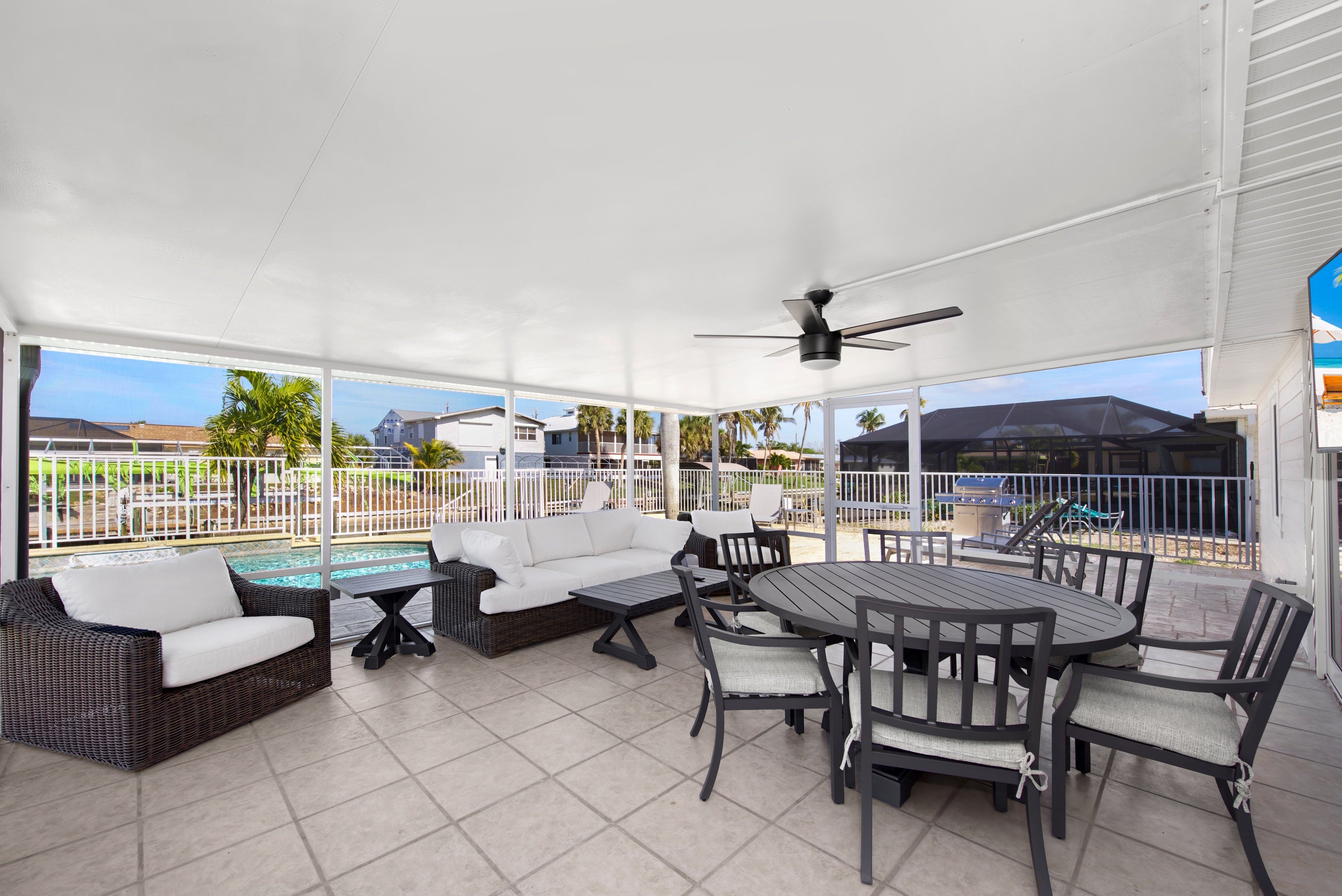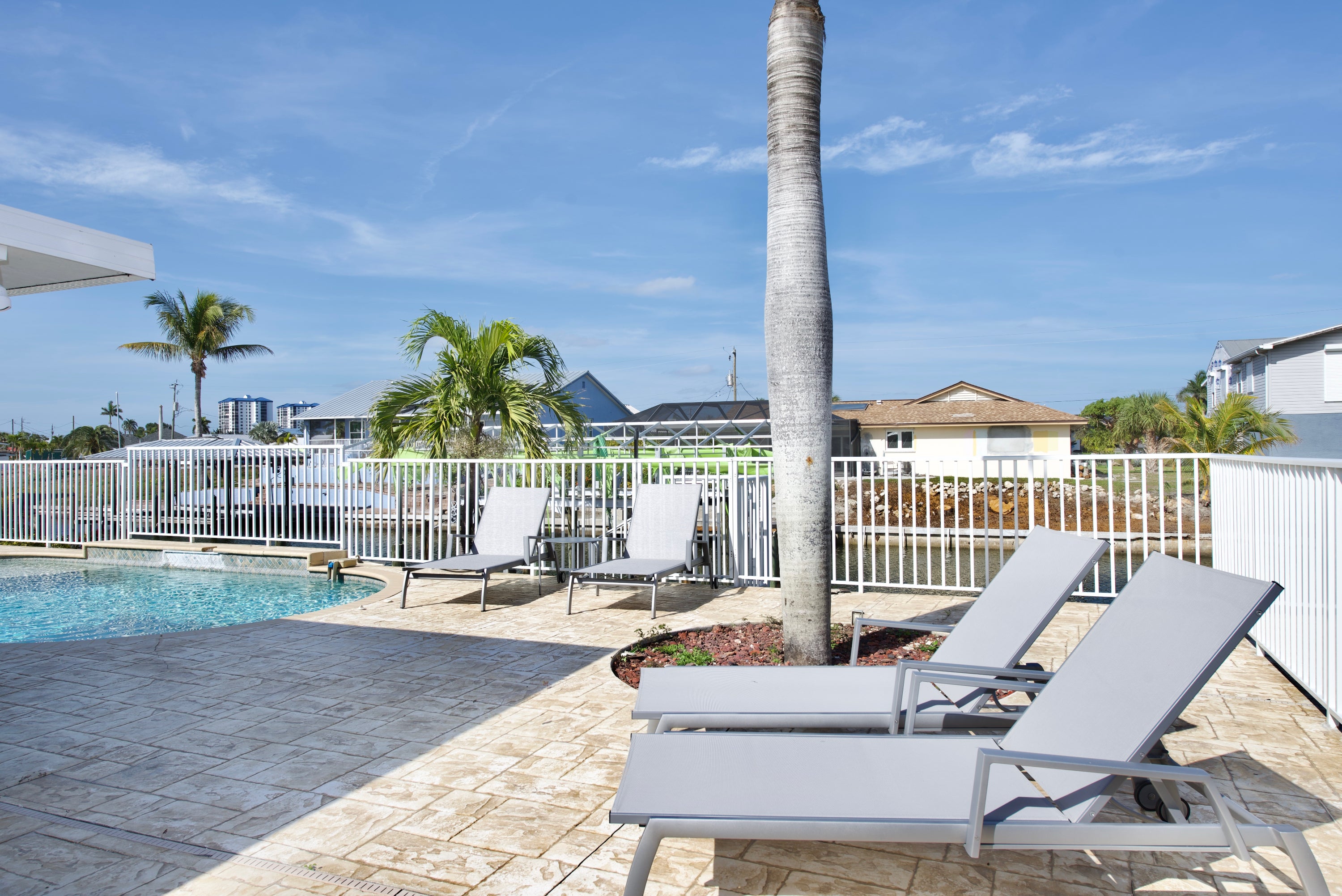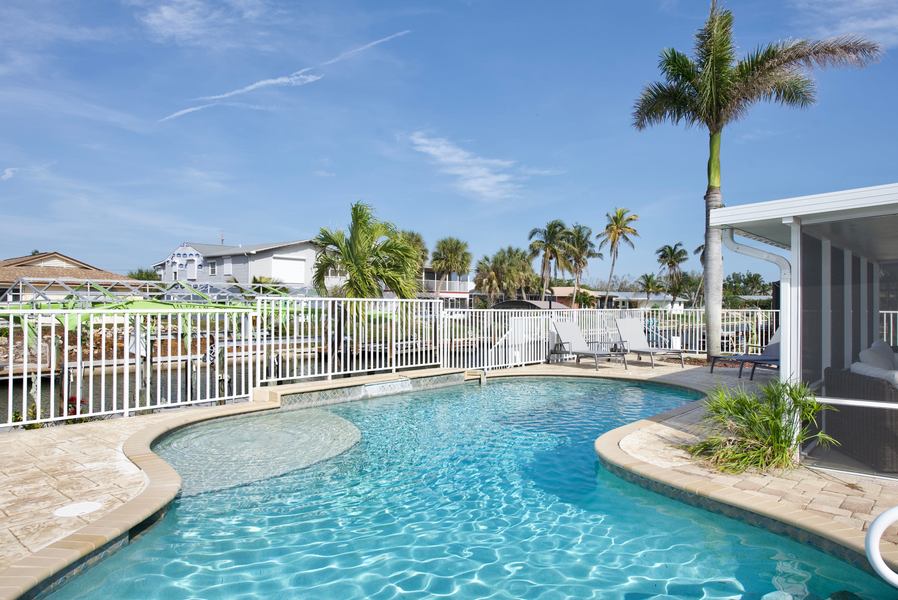 Welcome to The Pink Lily, this stunning waterfront home features the perfect blend of luxury, comfort, and coastal living in mid-island Fort Myers Beach. Bring your kayak and enjoy the wildlife swim around you on the canal. The interior is designed for both relaxation and entertainment. The open concept living spaces seamlessly flow from room to room, creating an inviting atmosphere for family gatherings or hosting guests. The fully furnished lanai opens to the outdoor pool with a grill, plenty of seating for dining and lounging and soaking up the sun. The kitchen is fully equipped with everything you will need to enjoy dining in, including a wine fridge and a Cuisinart Coffee Maker and beautiful white quartz counter tops and island. The primary bedroom has a king bed and en suite with a walk-in shower and rain shower head. The first guest bedroom features a queen bed, and the second guest bedroom offers a full bed. This home comfortably sleeps up to 6 guests. Make The Pink Lily your favorite place to stay for years to come.