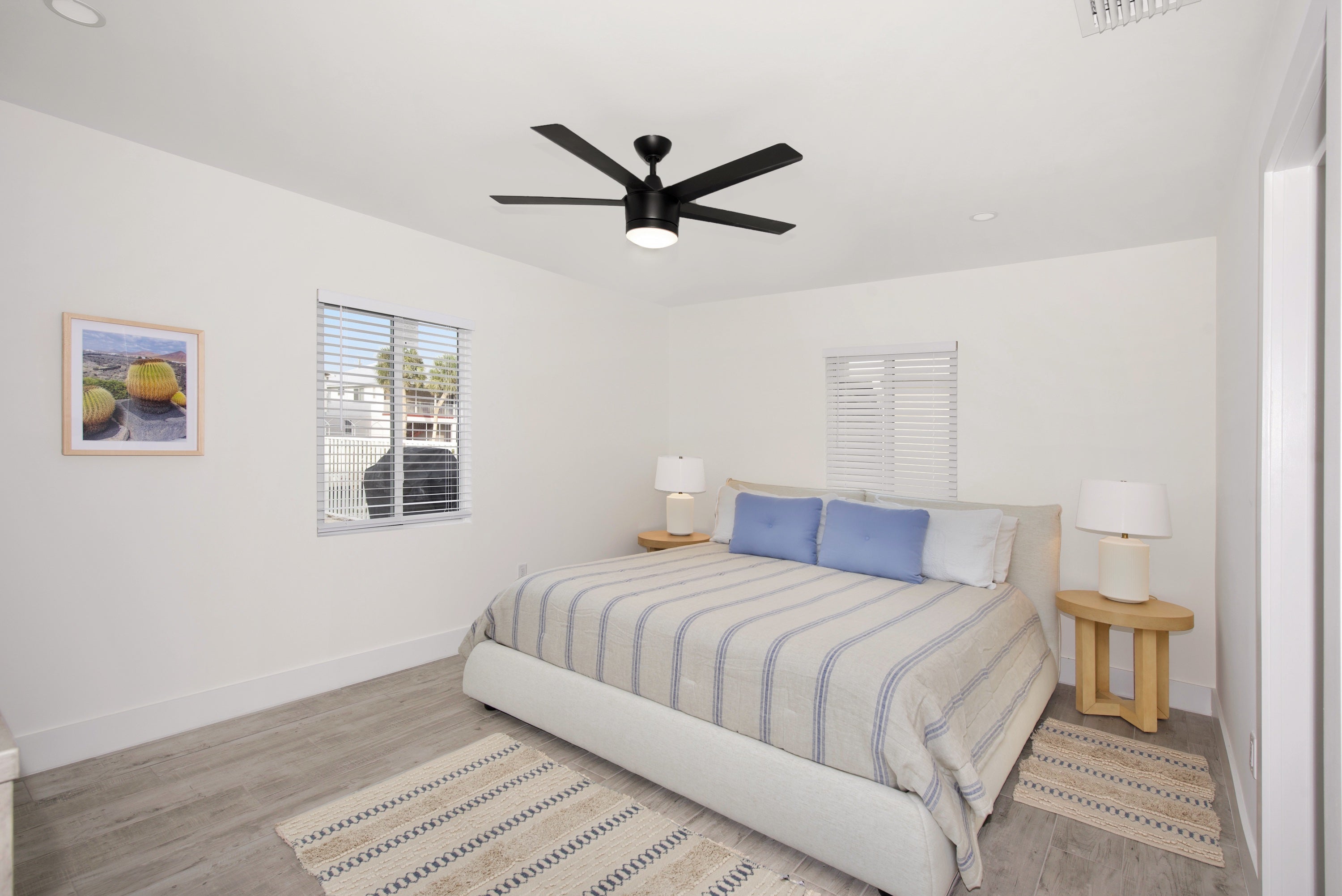 "Recently remodeled beautiful open space. Nice pool and short walk to the beach. Has beach chairs and wagon not listed in amenities. Comfortably fit 6 adults. Conveniently close to Publix which is good since it's stocked with bare minimum supplies. It's located at the quieter end of the beach so restaurants are limited. Traffic to the bridge is very heavy during 10a to 6p"