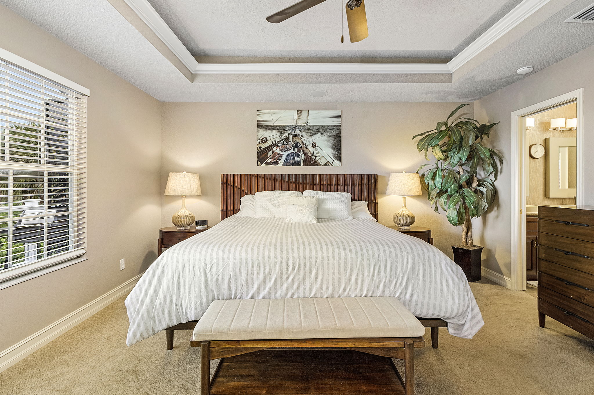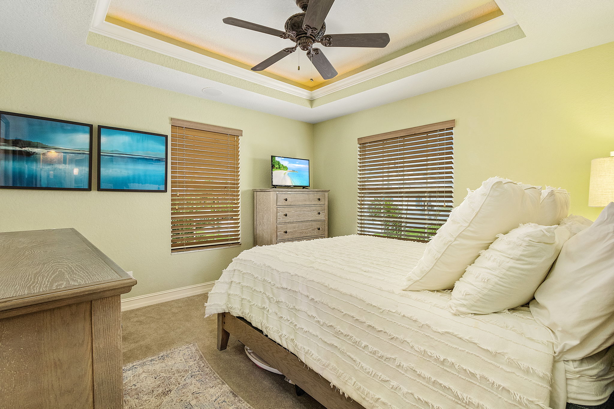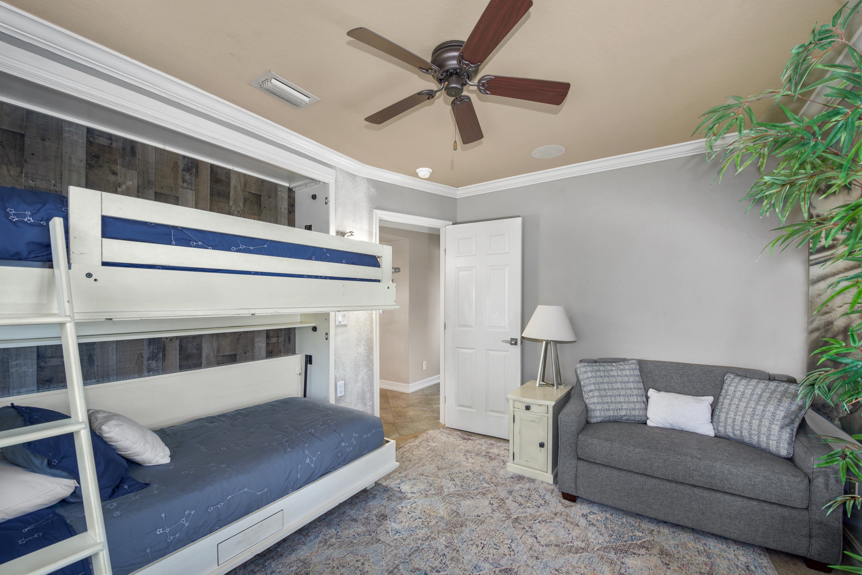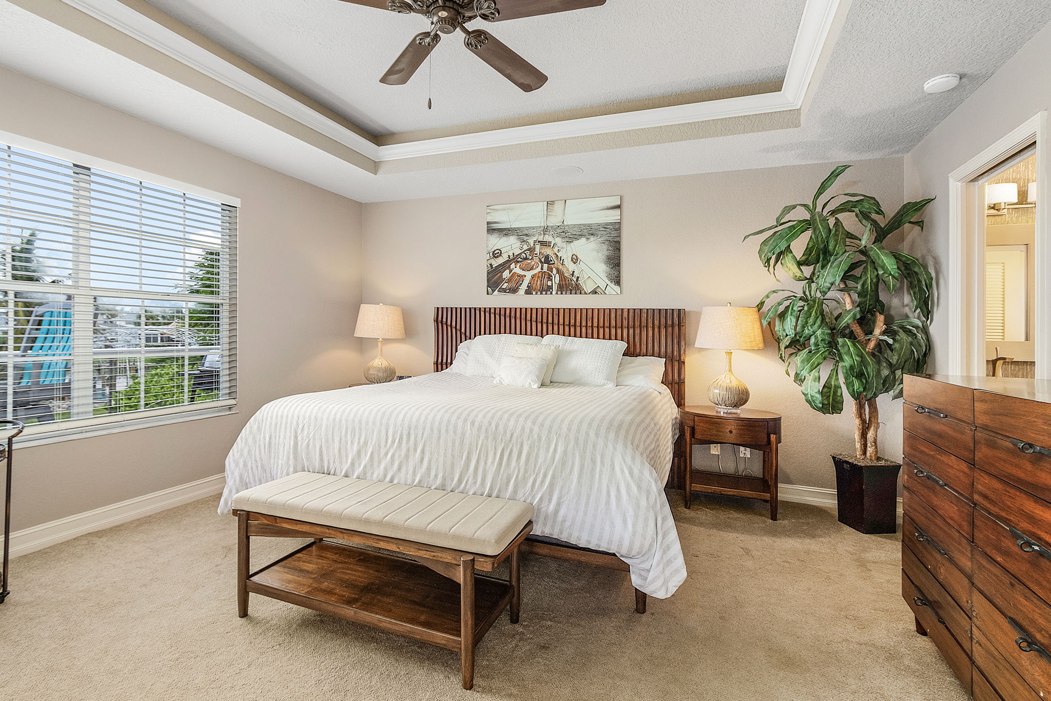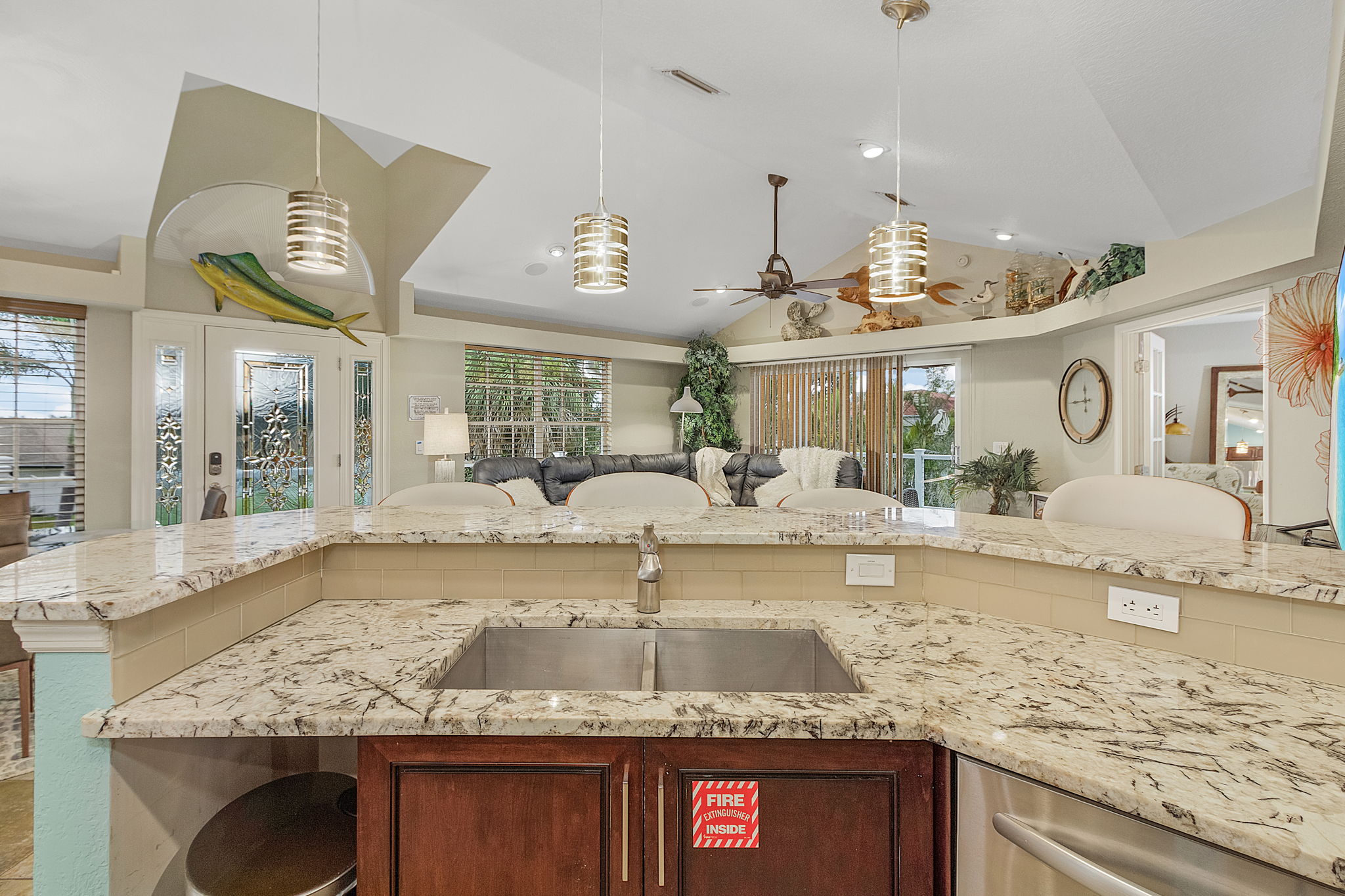 Welcome to The Sanctuary! This beautiful three-bedroom home sits across the bridge from Fort Myers Beach and is located on a canal to provide a perfect opportunity to explore the area from the water. Just bring your small boat or kayak and tie it up to the dock at the back of the house! The dock provides outdoor seating while viewing the Florida "locals" that may swim or fly past. An open floor plan with vaulted ceilings and plenty of natural light welcomes you indoors. The living room features a large leather sectional with a recliner and a giant flat screen TV. Sliding glass doors lead to a covered balcony that overlooks the yard and canal. Comfortable furnishings and grill will make you want to stay forever. Off of the living room, there is the primary bedroom with a king bed, tray ceilings, balcony access, and an attached bath. The primary bathroom has dual sinks and a spacious walk-in shower with two shower heads. Additional guests will find a queen guest bedroom, a bunk room with a custom murphy bed style bed, and a sofa sleeper. This home sleeps up to 7 guests comfortably. Come visit The Sanctuary and live like a local!