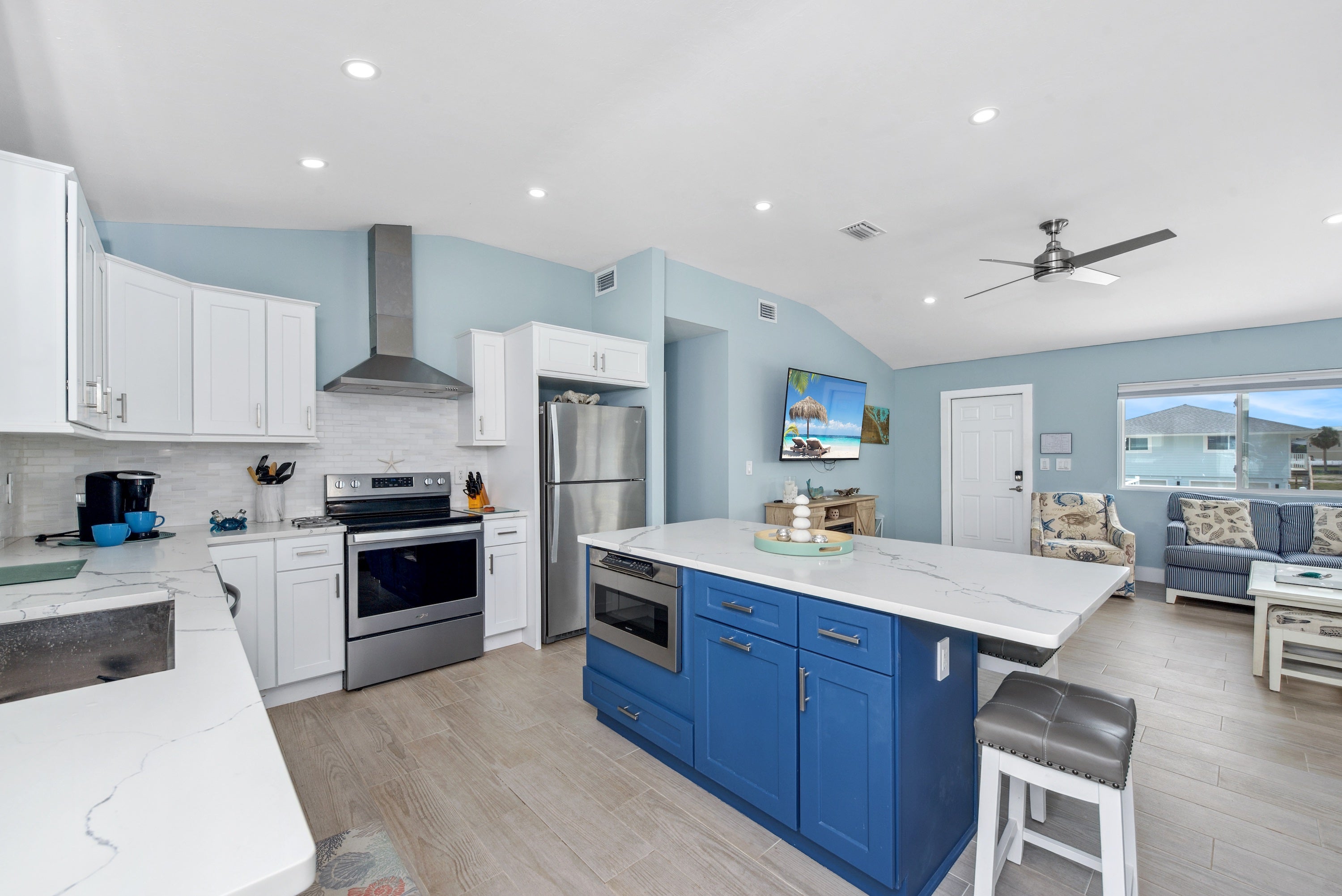 Welcome to your dreamy coastal escape! This fully renovated 4-bedroom, 2-bathroom beach house has everything you need for the ultimate getaway. Cook up some coastal cuisine in the stunning open-concept kitchen featuring brand new stainless steel appliances, a spacious island, and bar stools perfect for morning mimosas or sunset snacks.
