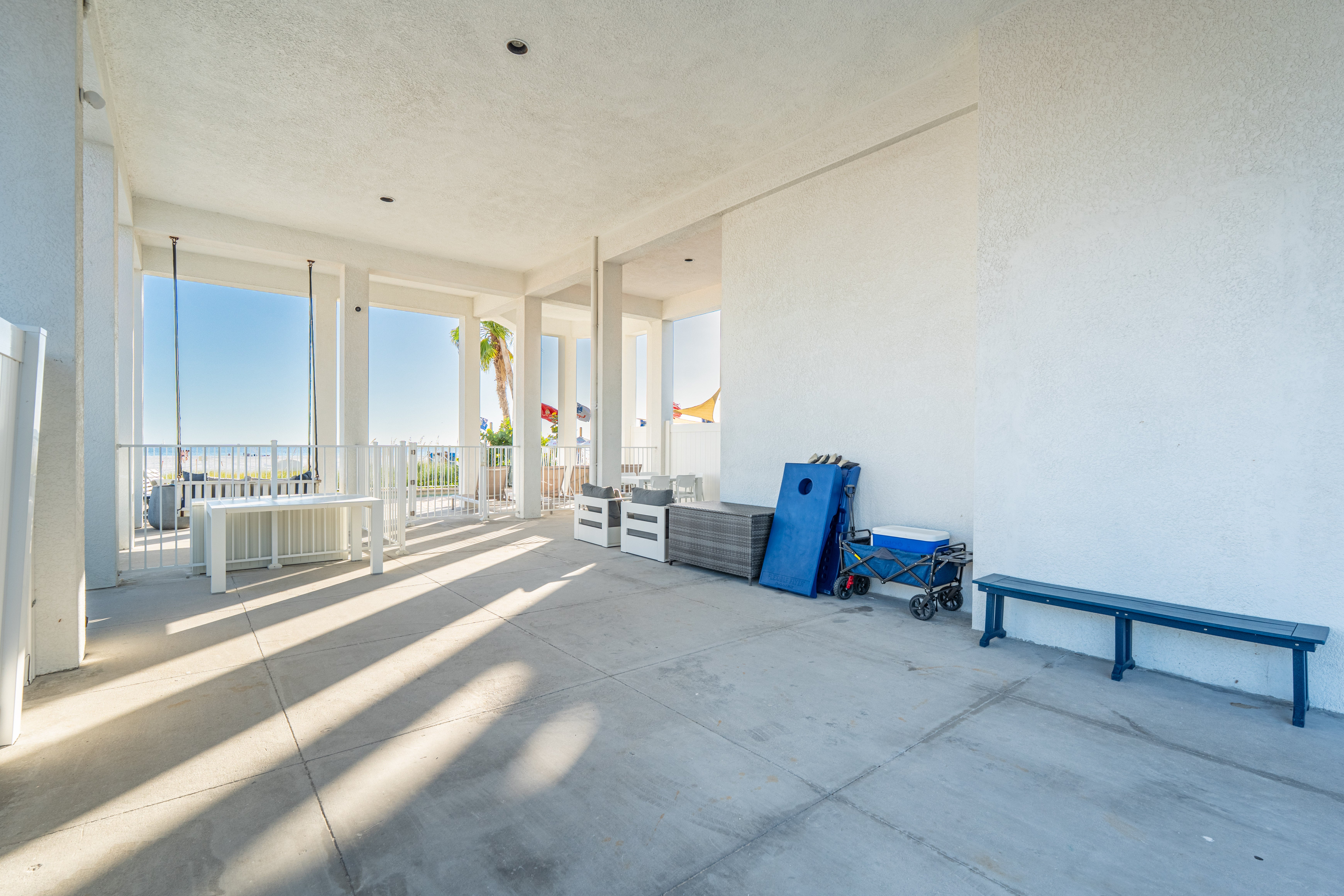 "We took all our kids and grandkids, aged 5 months- 7 years for spring break and we could not have had a better time. The home was perfect for us. We were slightly taken aback when we arrived, as there are trailers on both sides and portable toilets. This is however, temporary due to the rebuilding after the hurricane. The outdoor bar next door was pretty loud, but we liked the music for the most part and kids were still able to nap. They play from about 1 pm- 5pm. The house is very well insulated, and it feels very private from the inside. The pool was perfect! It’s right outside and has a locked gate. Our kids swam in it everyday. The water is very warm. The beach is beautiful, with lots of shells. We arrived on a Saturday of spring break and it was very busy but quieter during the week. The beach is public, but it’s huge. It’s just a little walk to the ocean. Most of the crowds are in front of the nearby condos. When you’re in the home, it feels very private. It was perfect!"