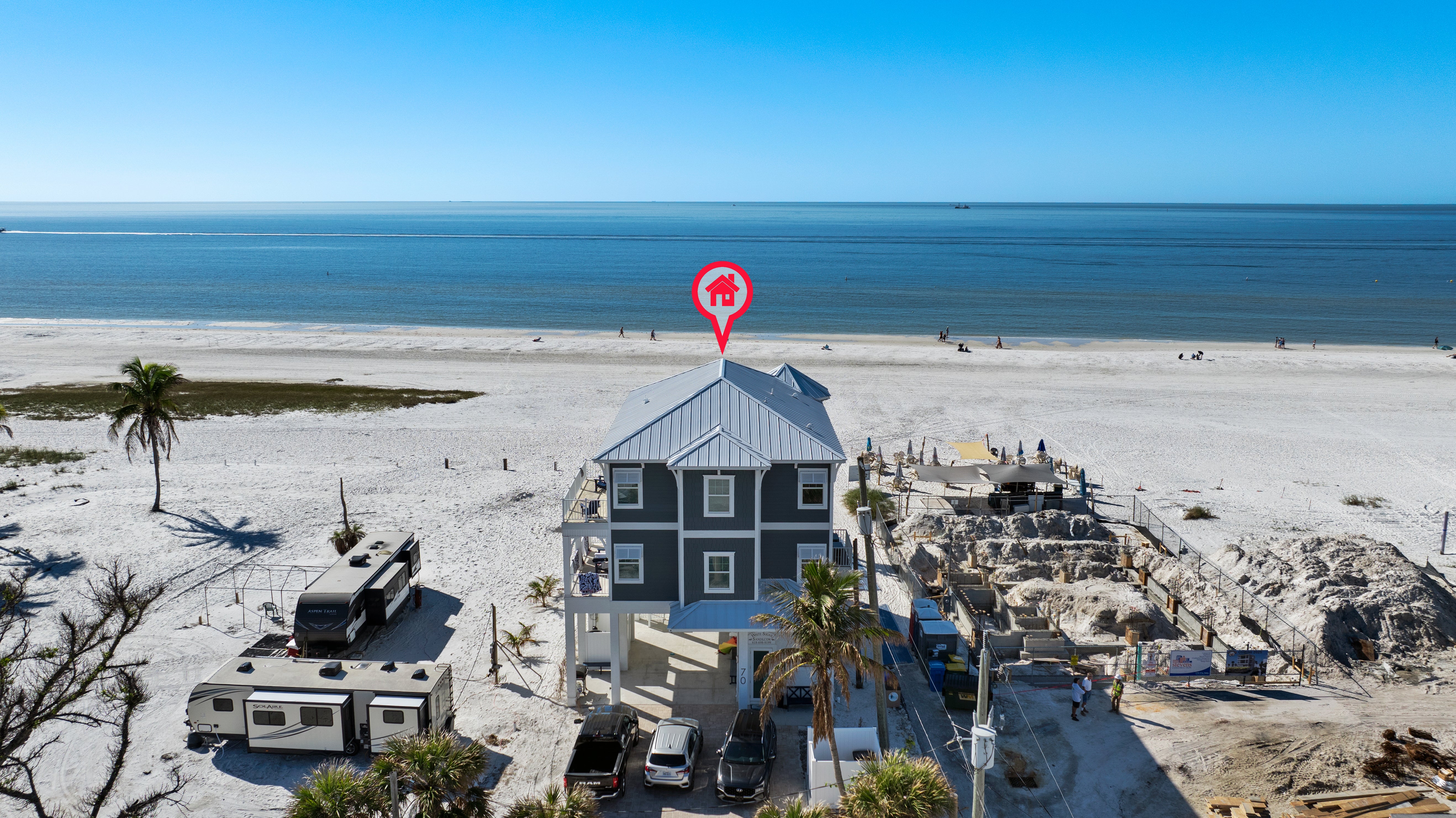"Fun in the Sun at FMB - Amazing on beach location of this huge house on Ft Myers Beach. Property is beautiful. It is located RIGHT NEXT to beach bar and public access to beach so it is lively and fun. It is NOT for you if looking for private/secluded beach getaway. Not a problem for us. We LOVED the daily live music. But this should be more prominently described to renters. Pool was not clean for first couple of days but managers were very responsive when I called. Pool heater can prob be shut off in April.